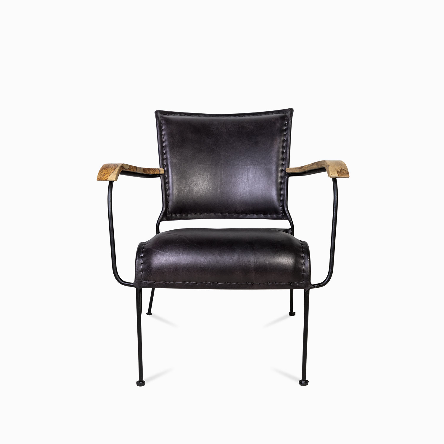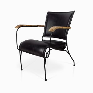 Poltrona elaborada en hierro y cuero de la colección Chelsea color negro, es una silla versátil puede utilizarse en el comedor o en la sala, su estilo clásico le permite adaptarse a diferentes decoraciones.