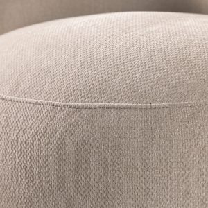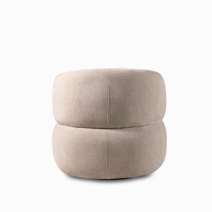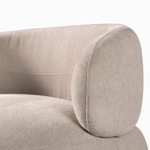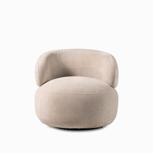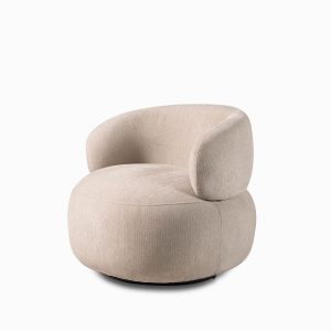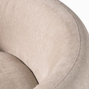 Poltrona de color taupe con atributos redondeados y geométricos de la colección Emilia, tiene mecanismo giratorio. Con relleno de espuma, tapizado en poliéster y respaldo acolchado que garantizan confort y atemporalidad. Aporta carácter y sofisticación a cualquier entorno, adaptándose a los diversos ambientes con su diseño minimalista y diferenciado.