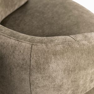 La poltrona Emilia es giratoria y ha sido diseñada para ofrecer un refugio personal de descanso sin ocupar demasiado espacio. Con una altura de 75 cm y un ancho de 85 cm, es la pieza perfecta para complementar salas, dormitorios o estudios privados. El tapizado en tono verde ofrece una apariencia fresca y natural, convirtiéndola en la pieza de acento ideal para romper con la monotonía de tonos neutros. Su tapizado en tela poliéster no solo es suave al tacto, sino también resistente al uso diario y fácil de cuidar.