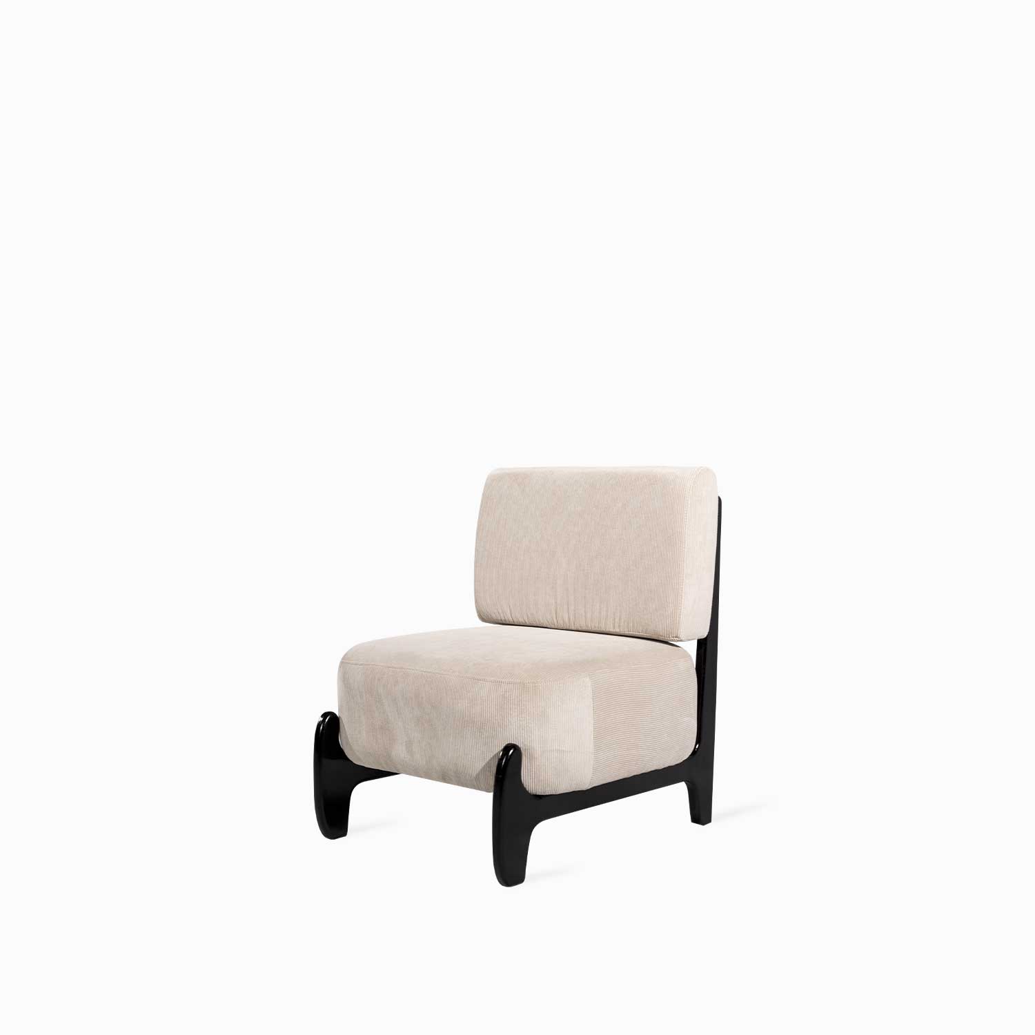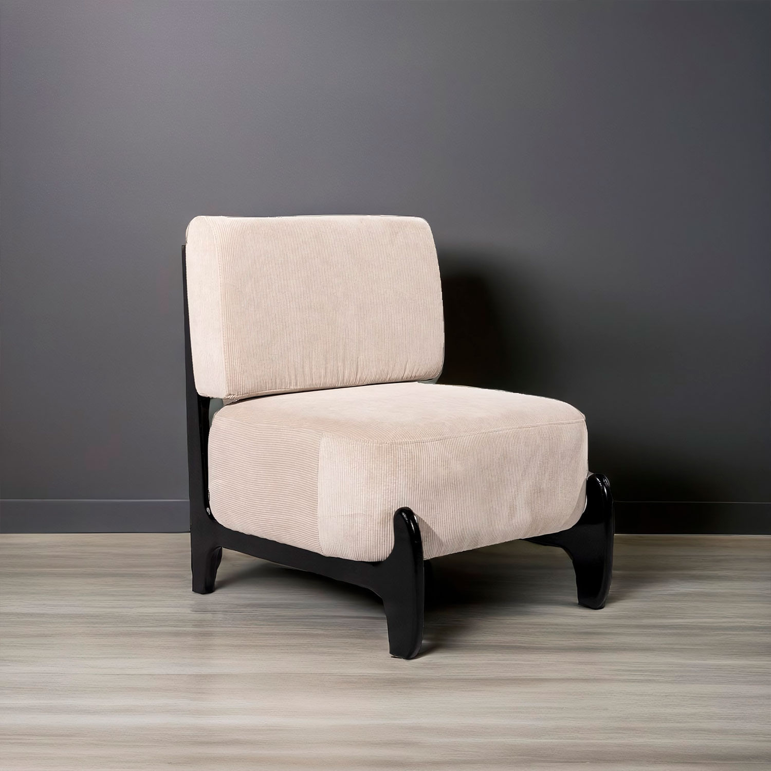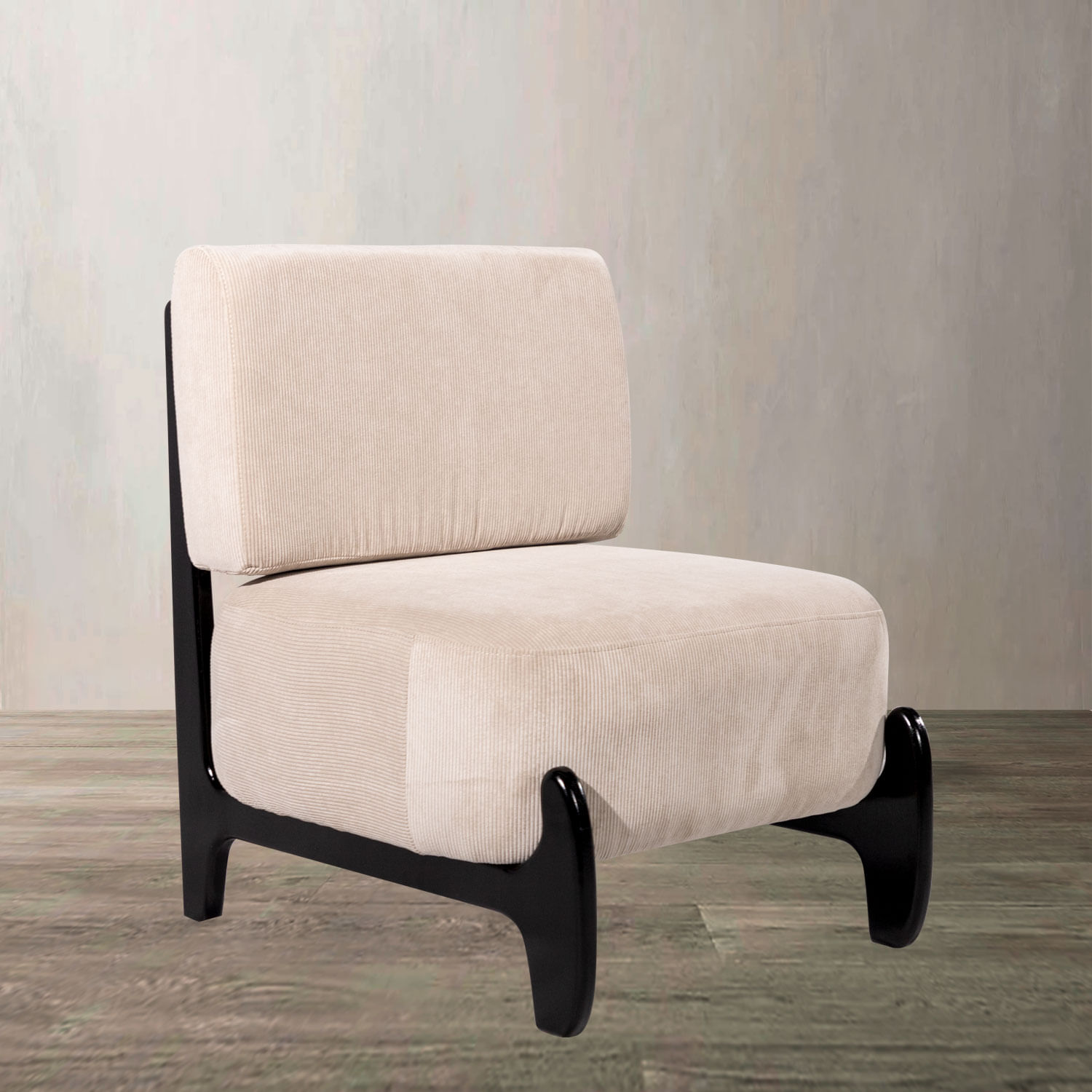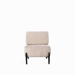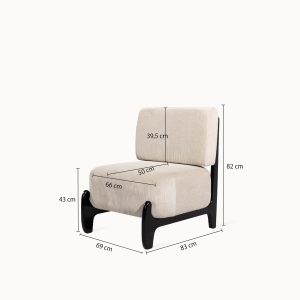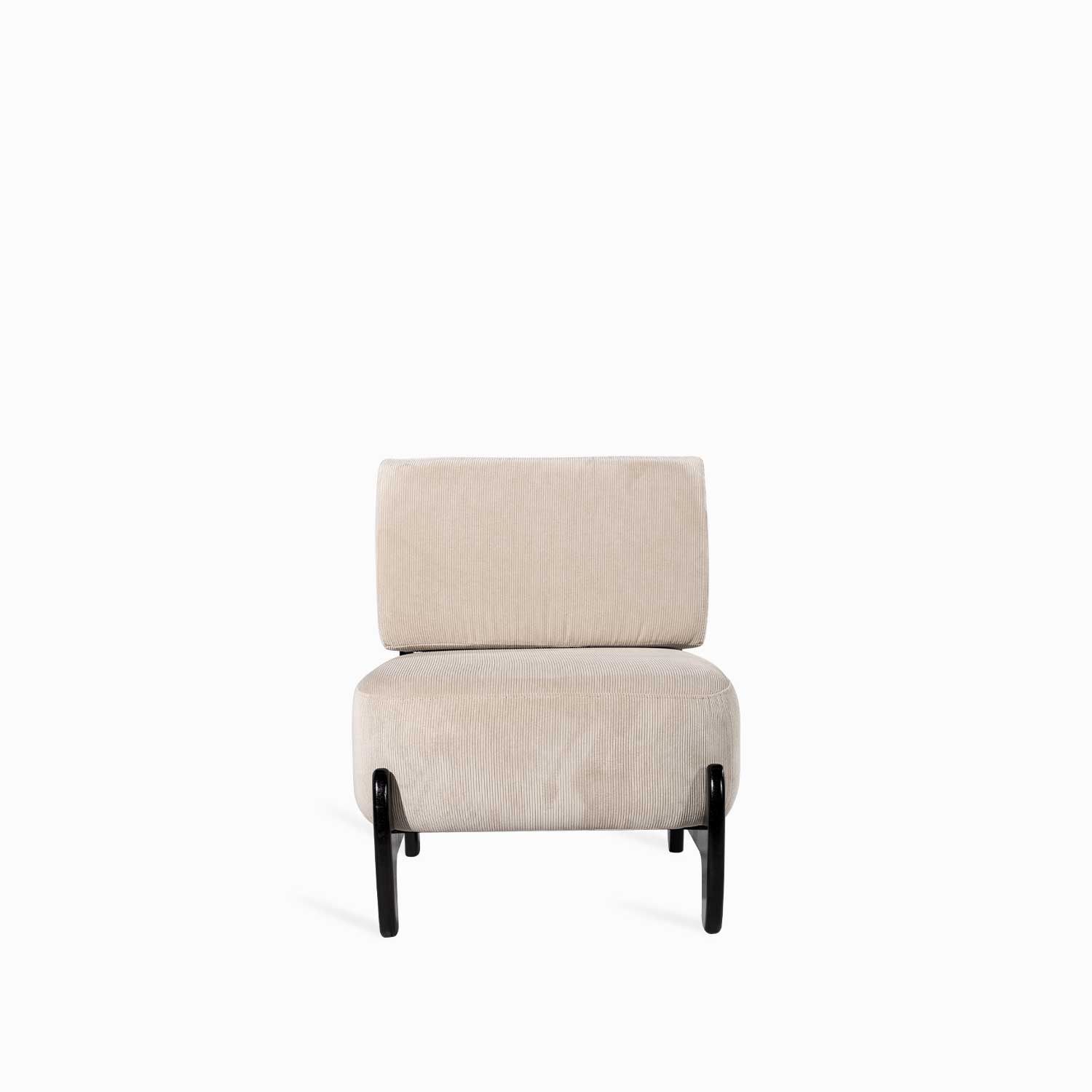 Poltrona de la colección Montreal en color beige, ideal para espacios interiores como estudios, salas o habitaciones. Con tapizado en tela, relleno en espuma y patas de madera. Con diseño moderno y funcional.