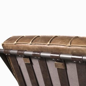 | Material | Estructura en hierro, tapizado en cuero y relleno en espuma. |