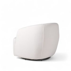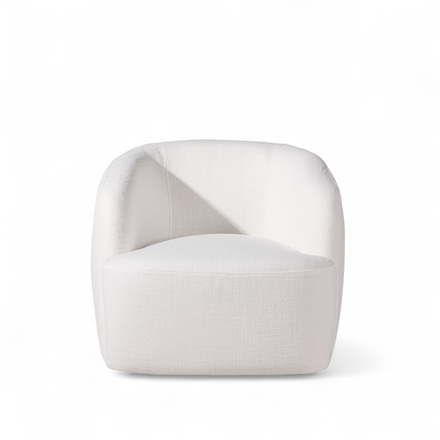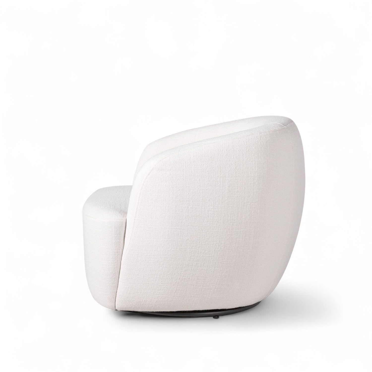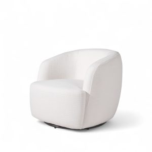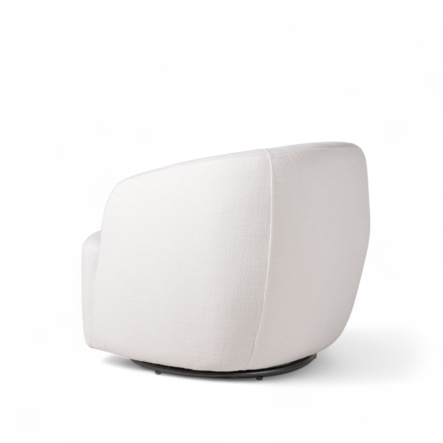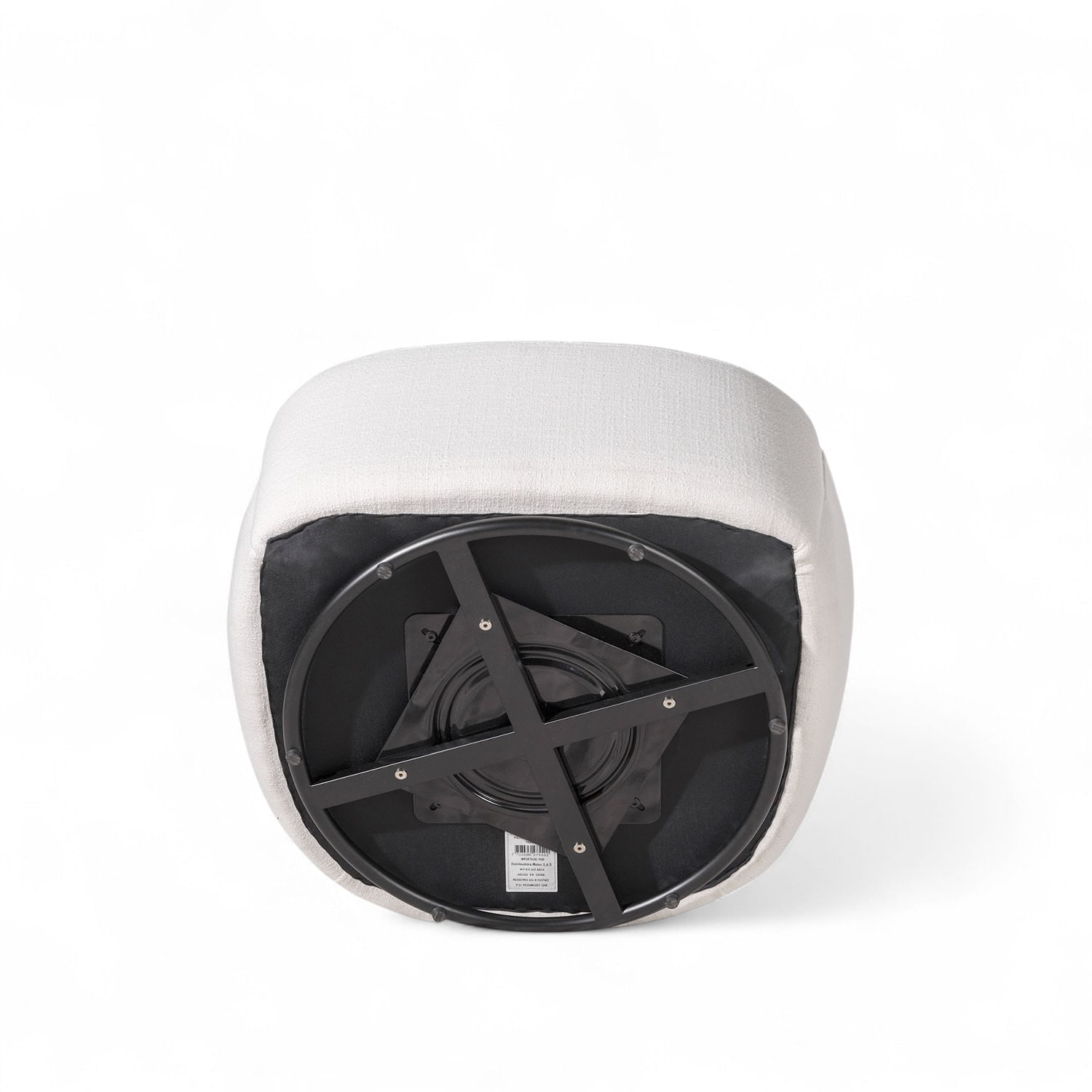 Poltrona de la colección Pavia color marfil, destacada por su estructura giratoria, es una silla versátil que puede utilizarse en sala, la habitación o el estudio, su estilo minimalista moderno tiene un espaldar en U que la hace muy confortable