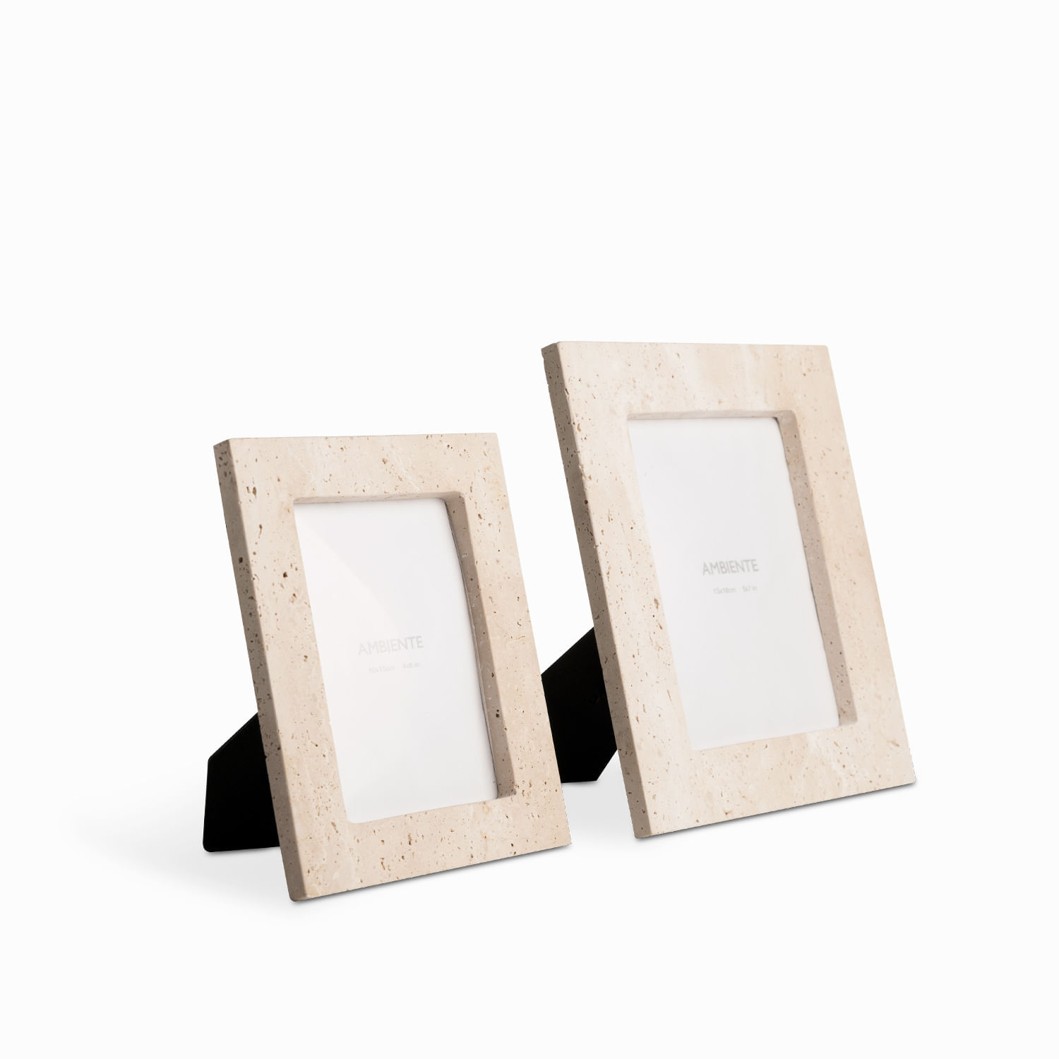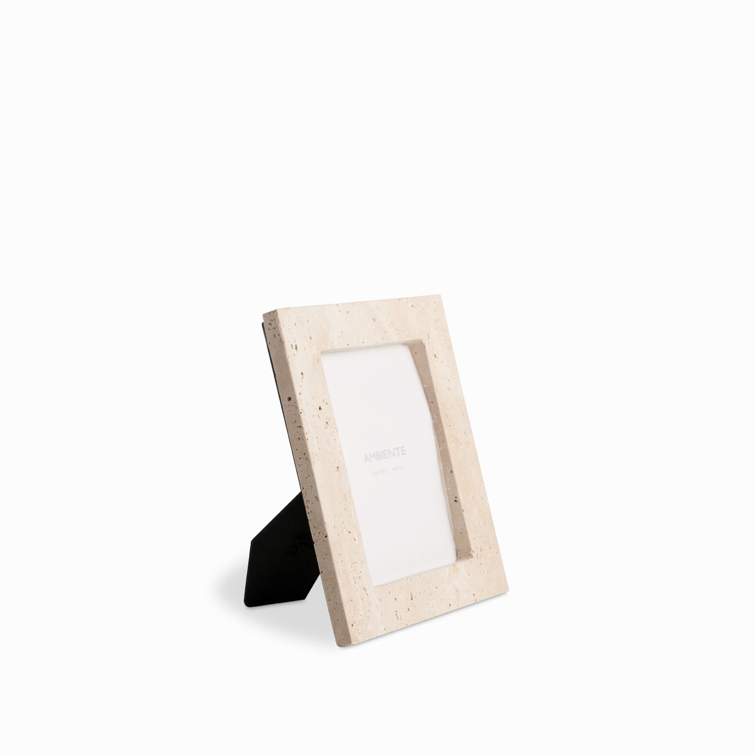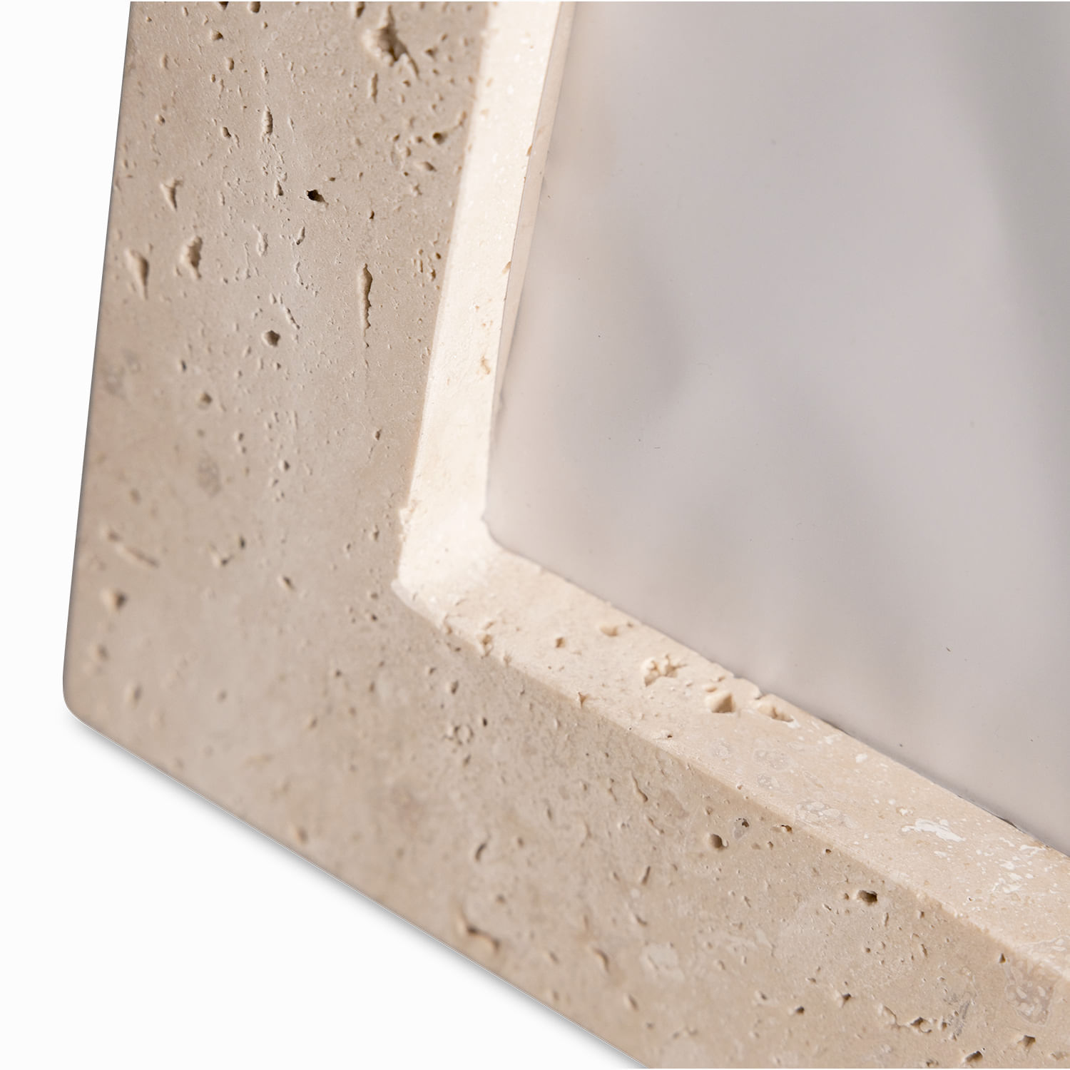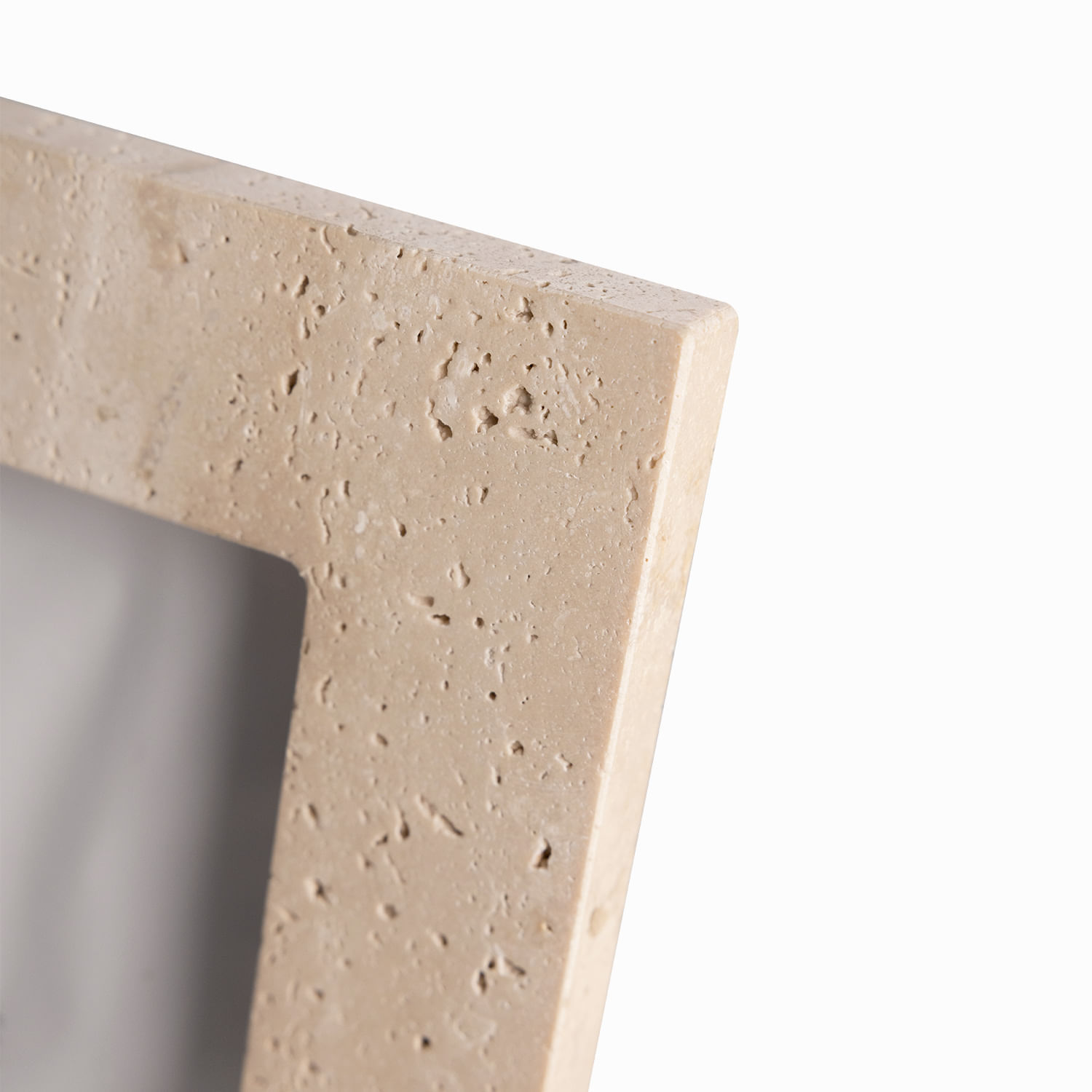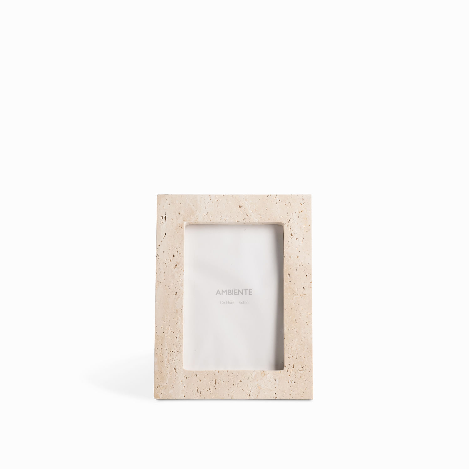 Portarretrato con marco en piedra de 21cm, elegante pieza decorativa con las vetas de la piedra natural. Ideal para atesorar recuerdos fotográficos con pequeños detalles de diseño.
