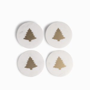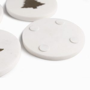 Juego de posavasos en mármol vienen cuatro piezas, sirven para soportar bebidas heladas y calientes en todo tipo de superficies, protegiendo los muebles de regueros, manchas y rasguños. Por su material la piedra presenta diferentes detalles en cada pieza, diseño navideño con árbol de navidad.