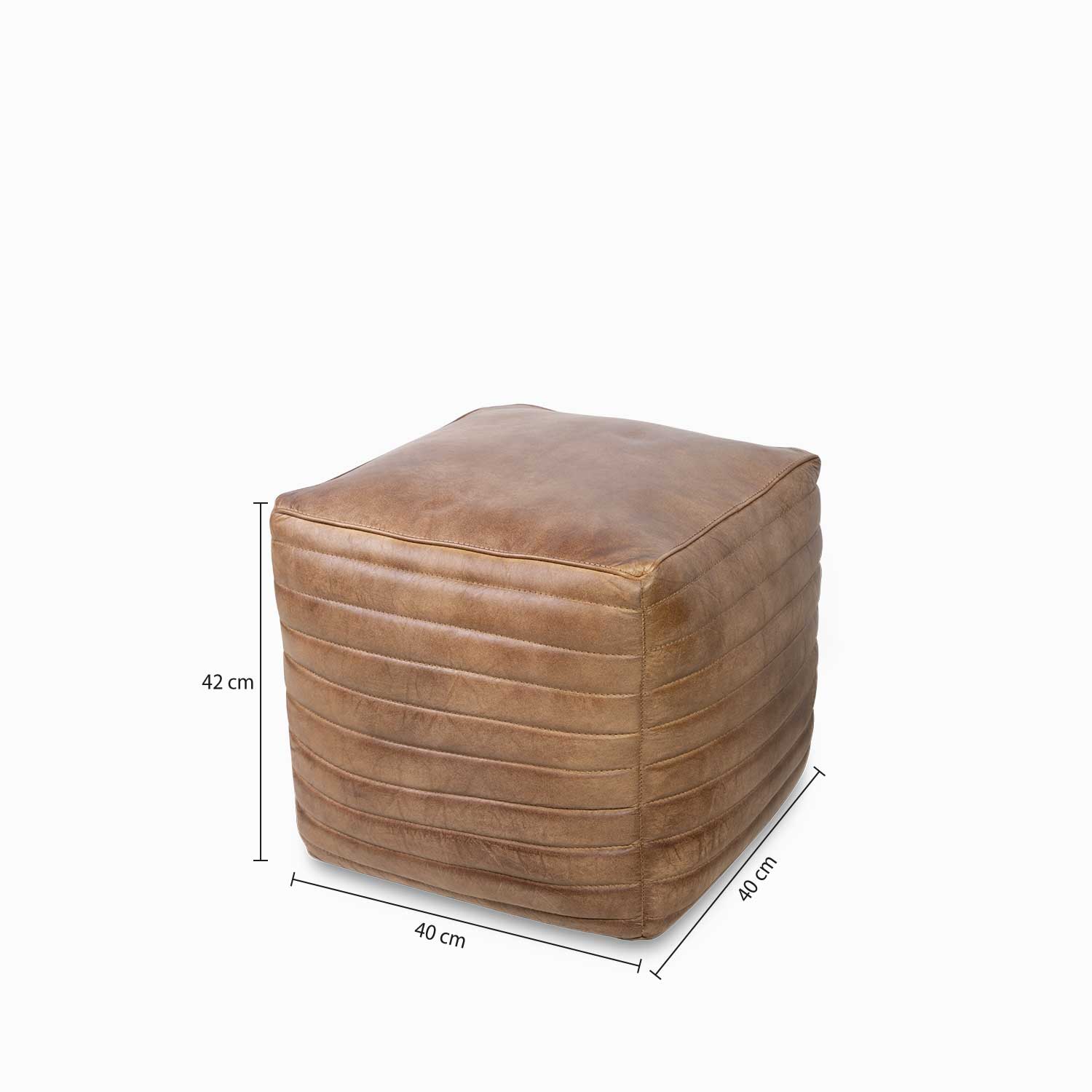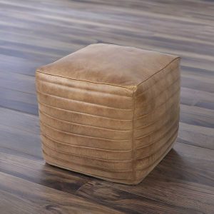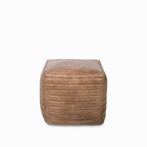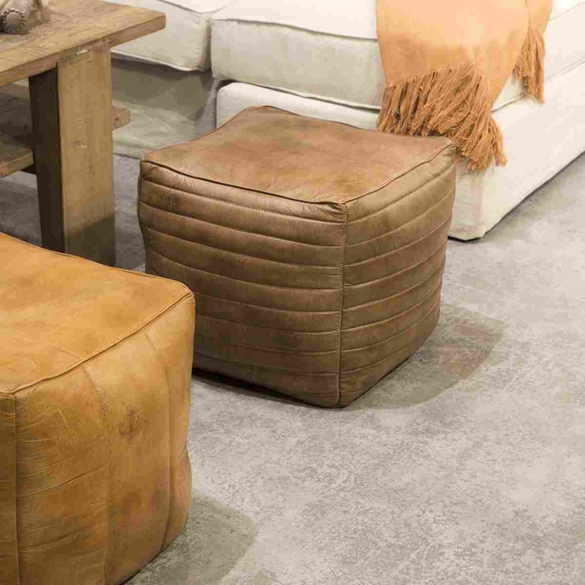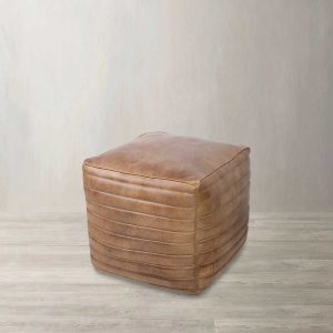 Puff de cuero, con diseño cuadrado y rayas horizontales con el que puedes añadir un asiento adicional a la sala de estar o al comedor sin restar espacio. También puedes utilizarlo como reposapiés. Su estilo artesanal lo convierten en una pieza atemporal que tiene el poder de transformar cualquier ambiente.