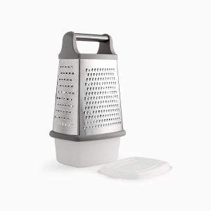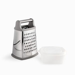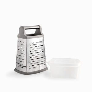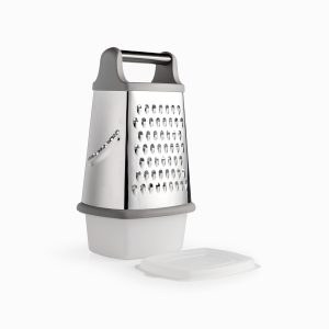 Rallador con dientes muy afilados en acero inoxidable que permite rallar en ambas direcciones, para ahorrar tiempo y energía, su mango en caucho ayuda a tener un mejor agarre, además es fácil de lavar.