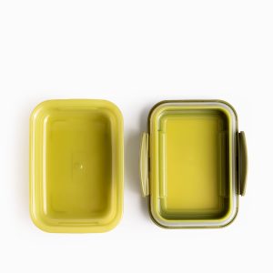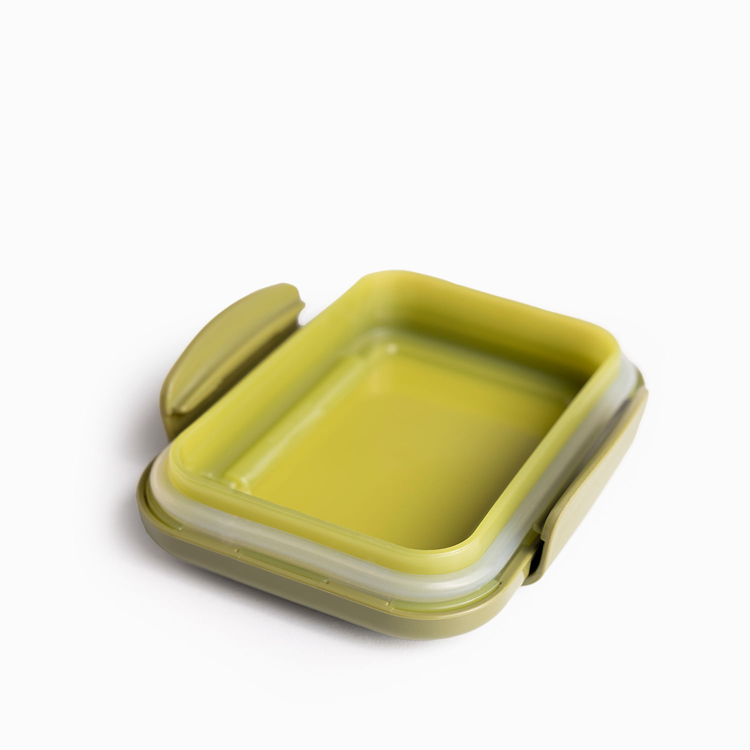 Recipiente hermético de 174 ml, ideal para guardar postres o pequeñas cantidades de alimentos. Fabricado en polipropileno, cuenta con una tapa con empaque de silicona que sella perfectamente para proteger los alimentos de la humedad. Disponible en un moderno color verde oliva.