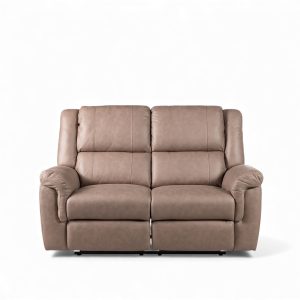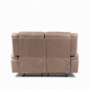 Sofá reclinable en color café y con capacidad de dos puestos. Caracterizado por su tapizado en poliéster y su tecnología reclinable que permite su posicionamiento en dos maneras para un mayor descanso, ideal para amoblar salas de estar, alcobas o bibliotecas.