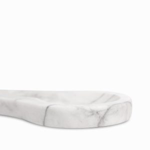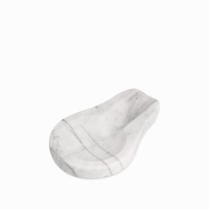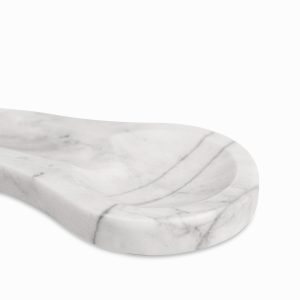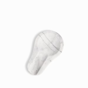 Soporte para cucharas en mármol, es un esencial de la cocina porque evita regueros en el mesón, por su material la piedra presenta diferentes detalles en cada pieza.
