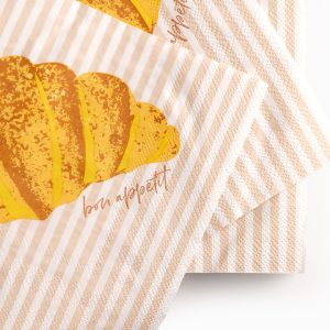 Con un estampado que celebra el icónico croissant, estas servilletas son el accesorio perfecto para brunch, desayunos especiales o meriendas con amigos. Un paquete completo de 20 servilletas de papel que garantiza que todos tus invitados disfruten del detalle sin preocuparse por la cantidad