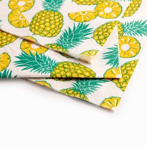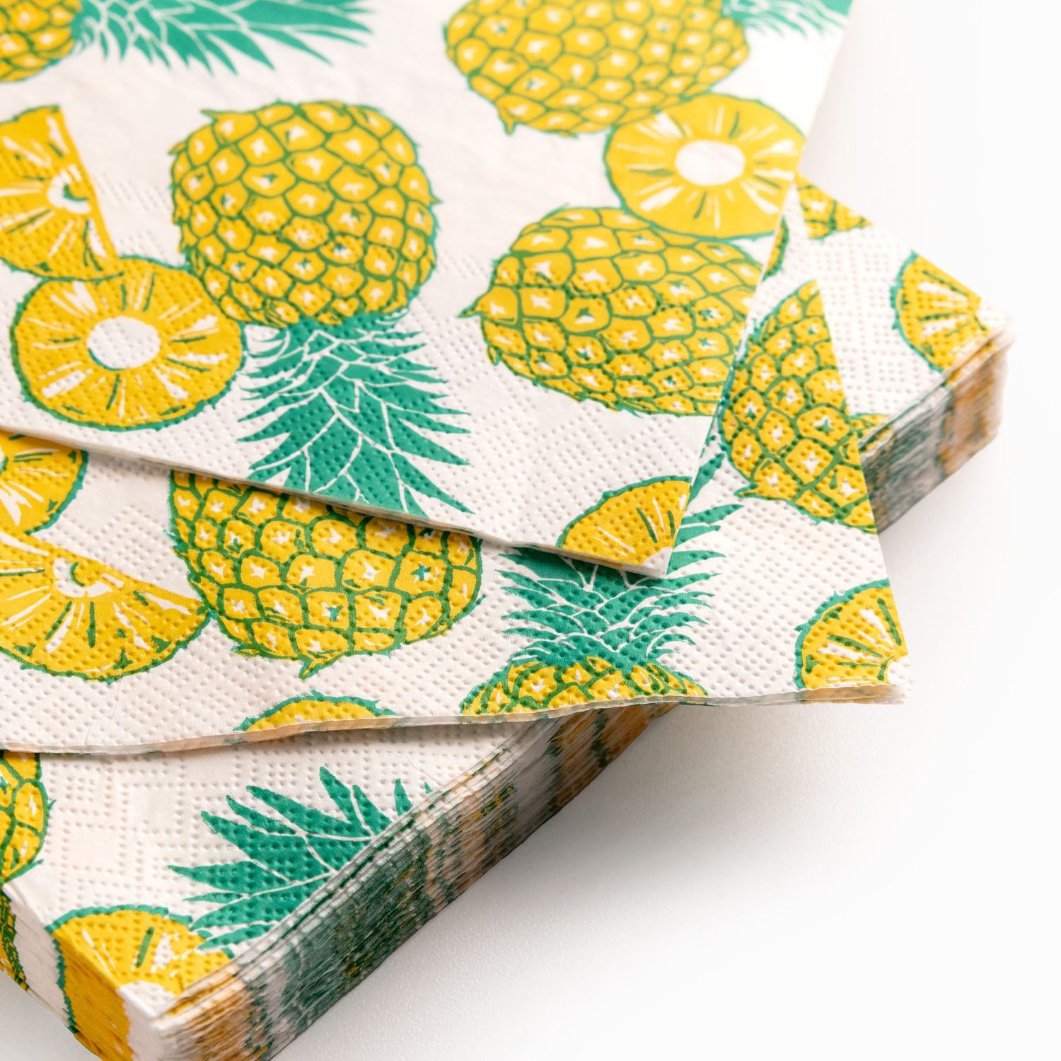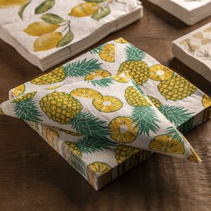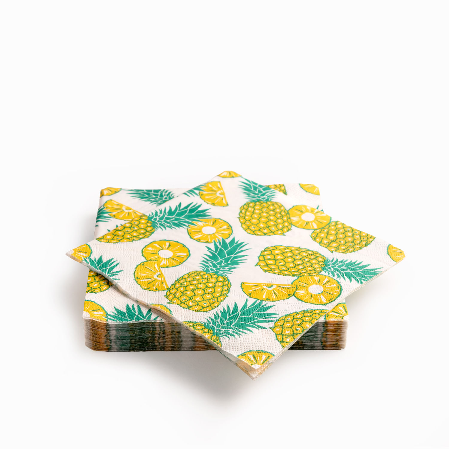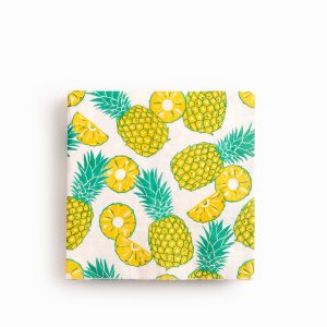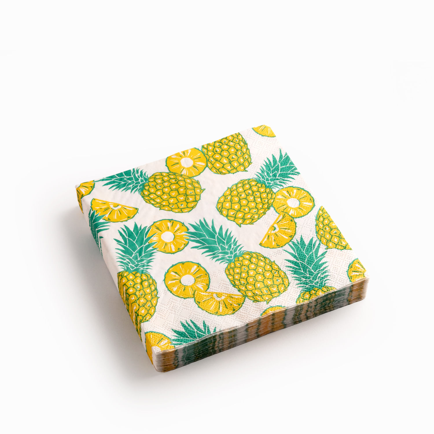 Las servilletas piñas transforman un servicio de café ordinario en una experiencia tropical. Su diseño es divertido y sofisticado a la vez, lo que las hace perfectas para combinar con tablas de quesos, panes artesanales y frutas frescas. Al ser multicolores, aportan calidez visual y alegría a tu mesa de comedor o terraza. Todos nuestros paquetes de servilletas contienen 20 unidades de papel.