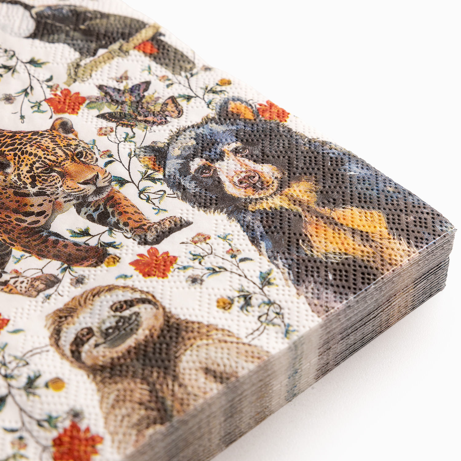 Con un estampado multicolor de motivos naturales, estas servilletas inyectan energía inmediata y un aire tropical a tu mesa, haciendo que cada servicio luzca más apetecible. Son la solución ideal para quien busca papelería de mesa con estilo, con motivos inspirados en la naturaleza y un diseño que celebra la alegría del color. Fabricadas en papel de alta calidad, combinan un diseño encantador con la funcionalidad necesaria para mantener la higiene durante tus comidas. Todos nuestros paquetes de servilletas contienen 20 unidades de papel.