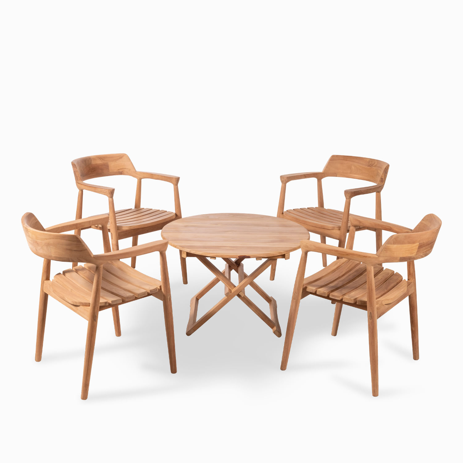 Juego de mesa de comedor redonda con 4 sillas en madera teca, con sus colores cálidos es perfecto para quienes buscan crear un ambiente acogedor y moderno en su hogar. Esta mesa versátil se adapta a cualquier espacio, pueden usarse como un punto focal.