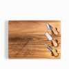 Tabla para quesos en acacia con utensilios en acero inoxidable. Un set especializado con tres herramientas: Cuchillo multipropósito, pala y tenedor. La solución perfecta para servir, cortar y exhibir madurados y pasantes en la mesa. Con diseño moderno y atemporal que destacar en cualquier celebración.