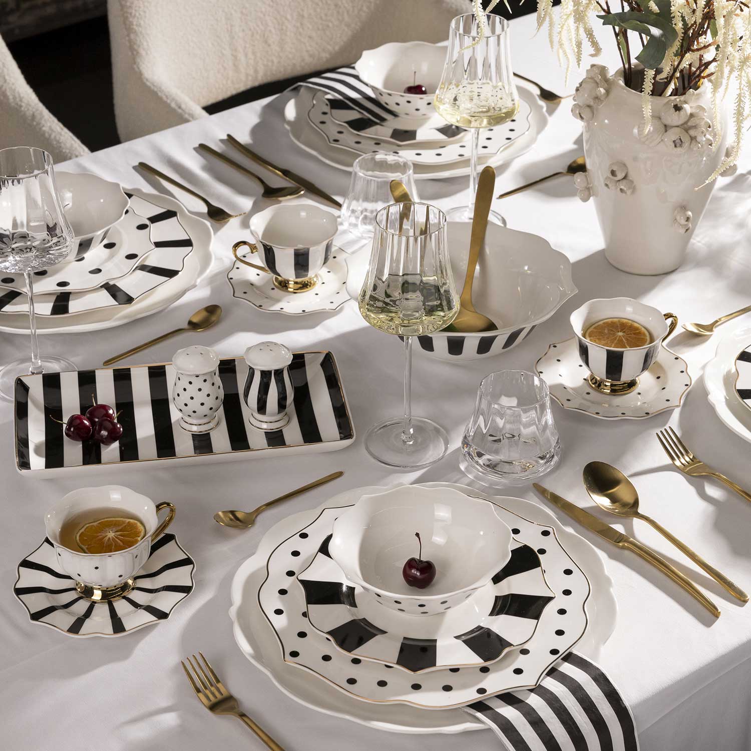 Añade el toque final de sofisticación a tu mesa con el set sal y pimienta Contraste. Estas piezas de diseño, fabricadas con la avanzada porcelana New Bone China, utilizan la icónica combinación blanco y negro para ofrecer un acento minimalista y elegante. Son el detalle funcional y decorativo que completa tu vajilla.