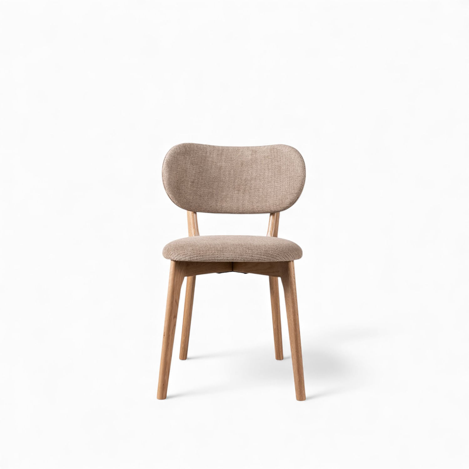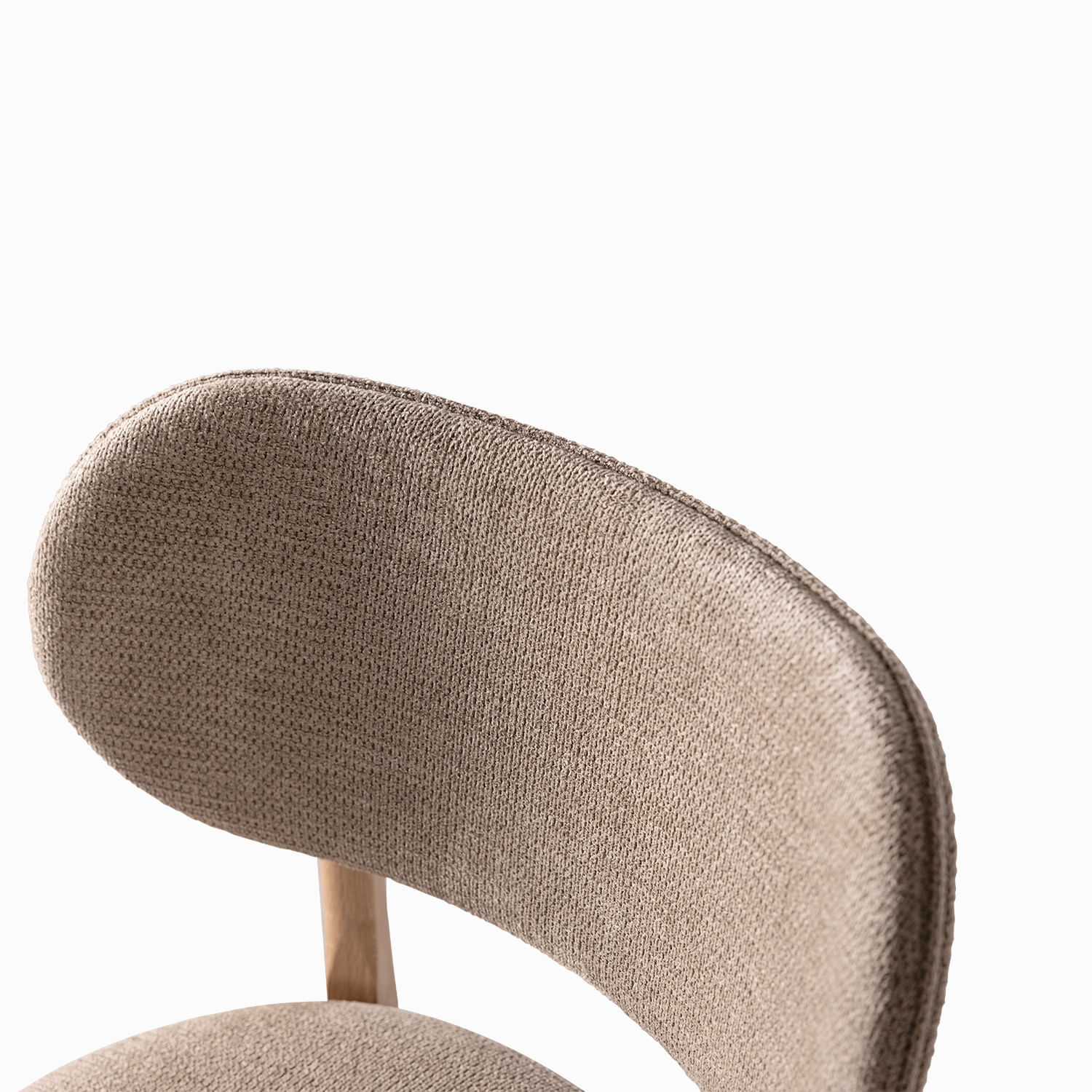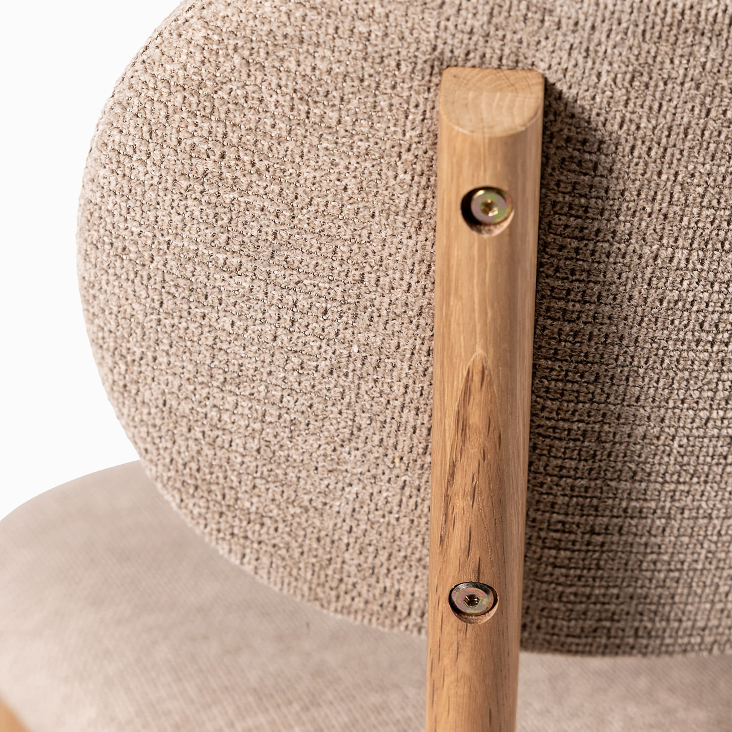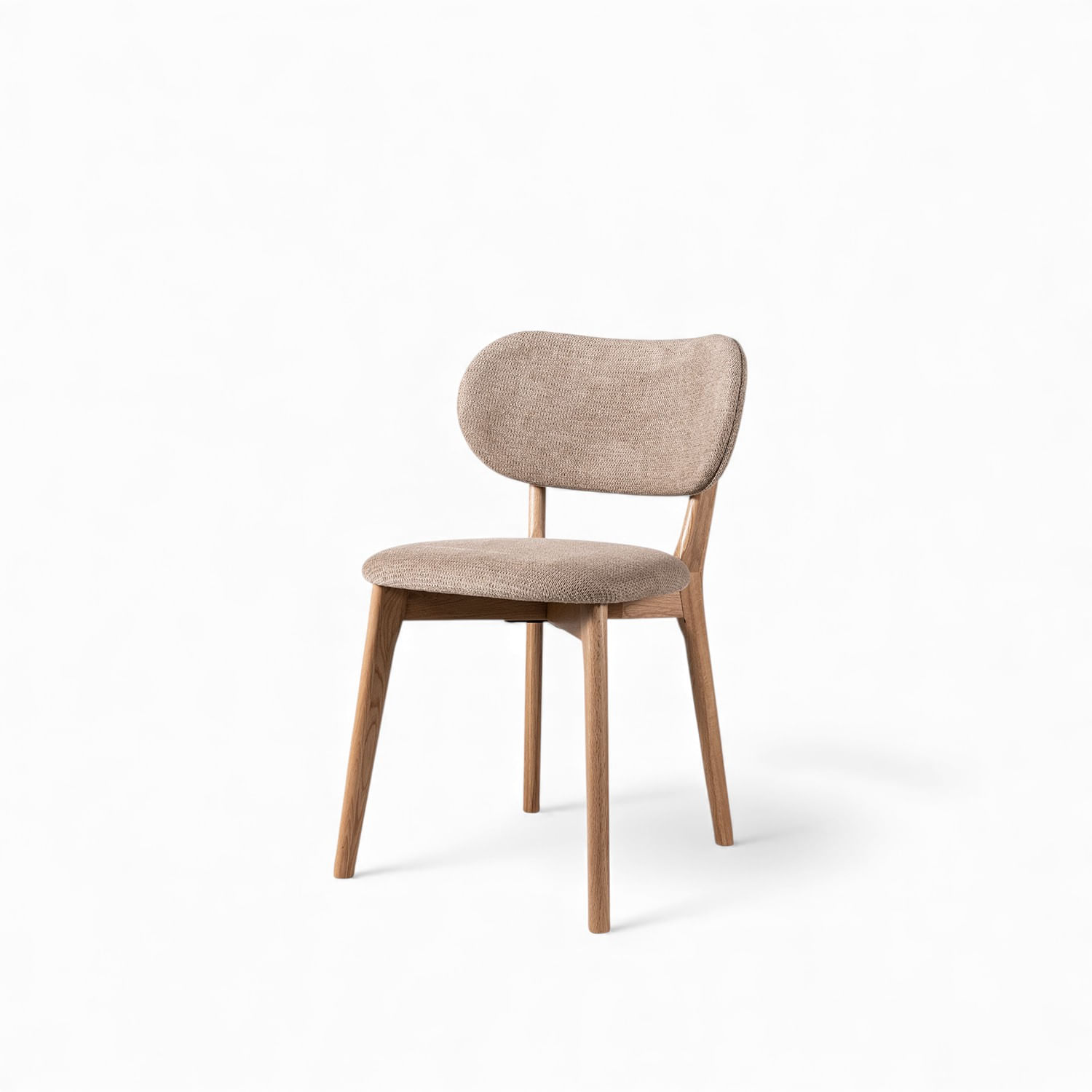 Transforma tu comedor en un espacio de encuentro acogedor y con estilo. La silla Arel combina la textura visual de la madera de roble con un diseño ergonómico, creando un asiento que es tan placentero a la vista como al tacto. El color taupe del tapizado añade una base neutra y sofisticada que eleva cualquier mesa.