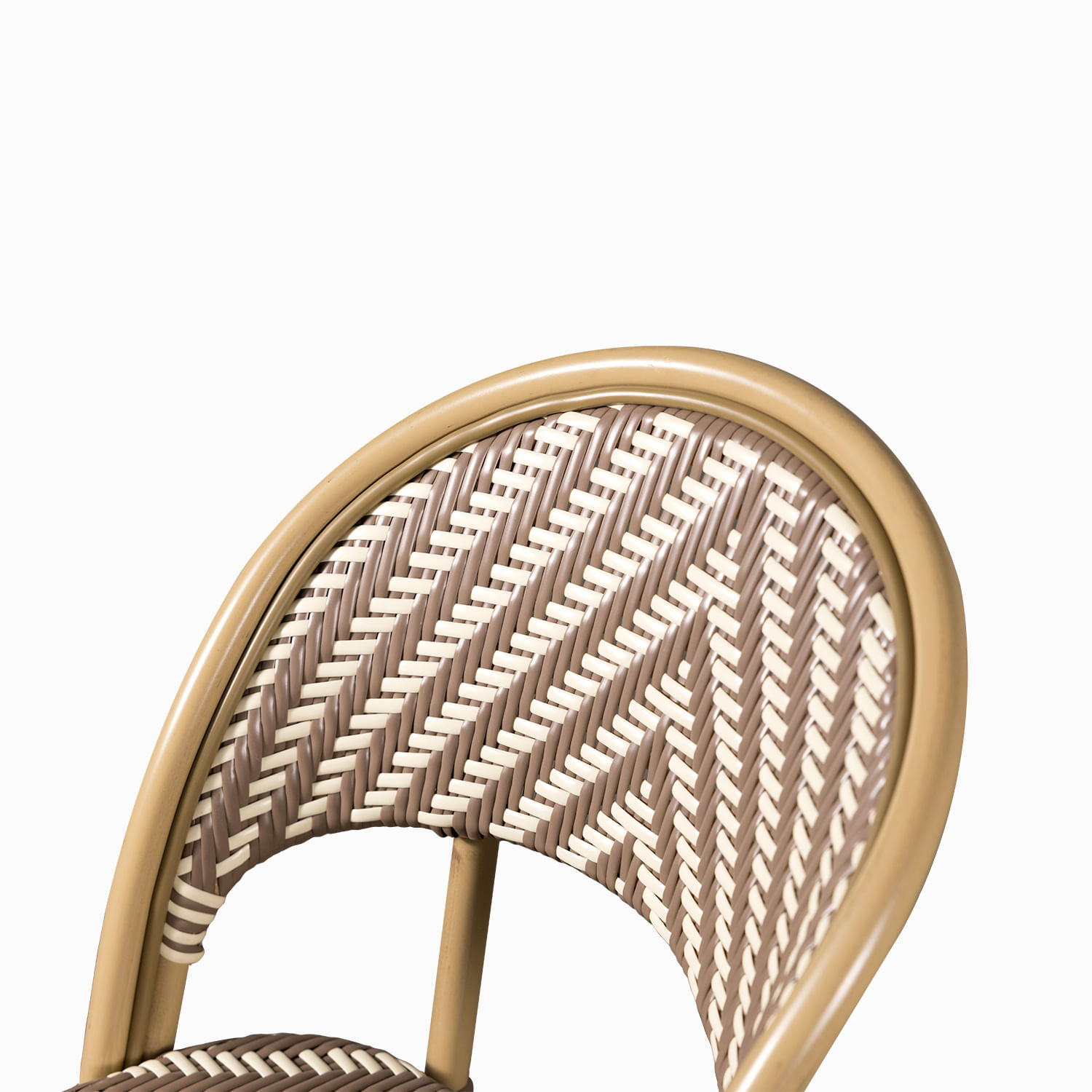 Confort ergonómico: El respaldo redondeado y el tejido flexible proporcionan un soporte cómodo y acogedor, permitiendo disfrutar de largas sobremesas con total confort.