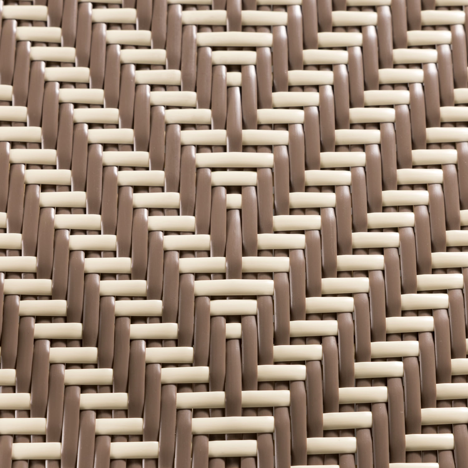 Tejido en espiga sofisticado: Su diseño destaca por un elaborado entrelazado en patrón de espina en tonos taupe y beige, que aporta una textura visual cálida y artesanal a tu comedor.