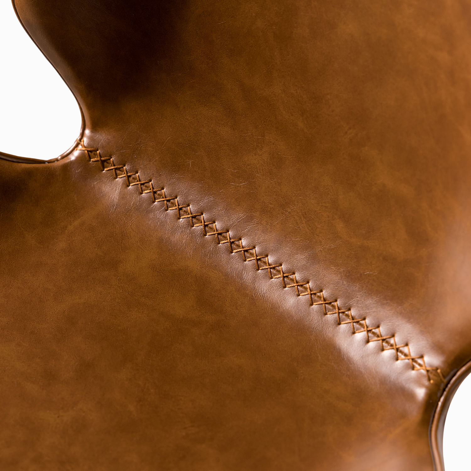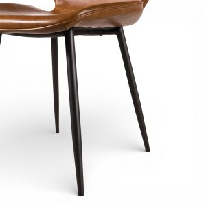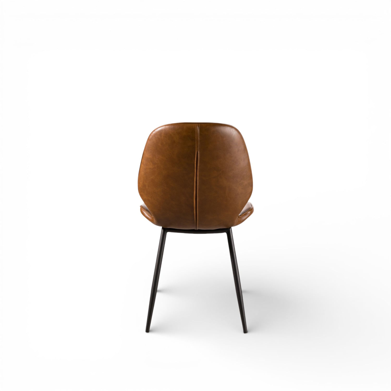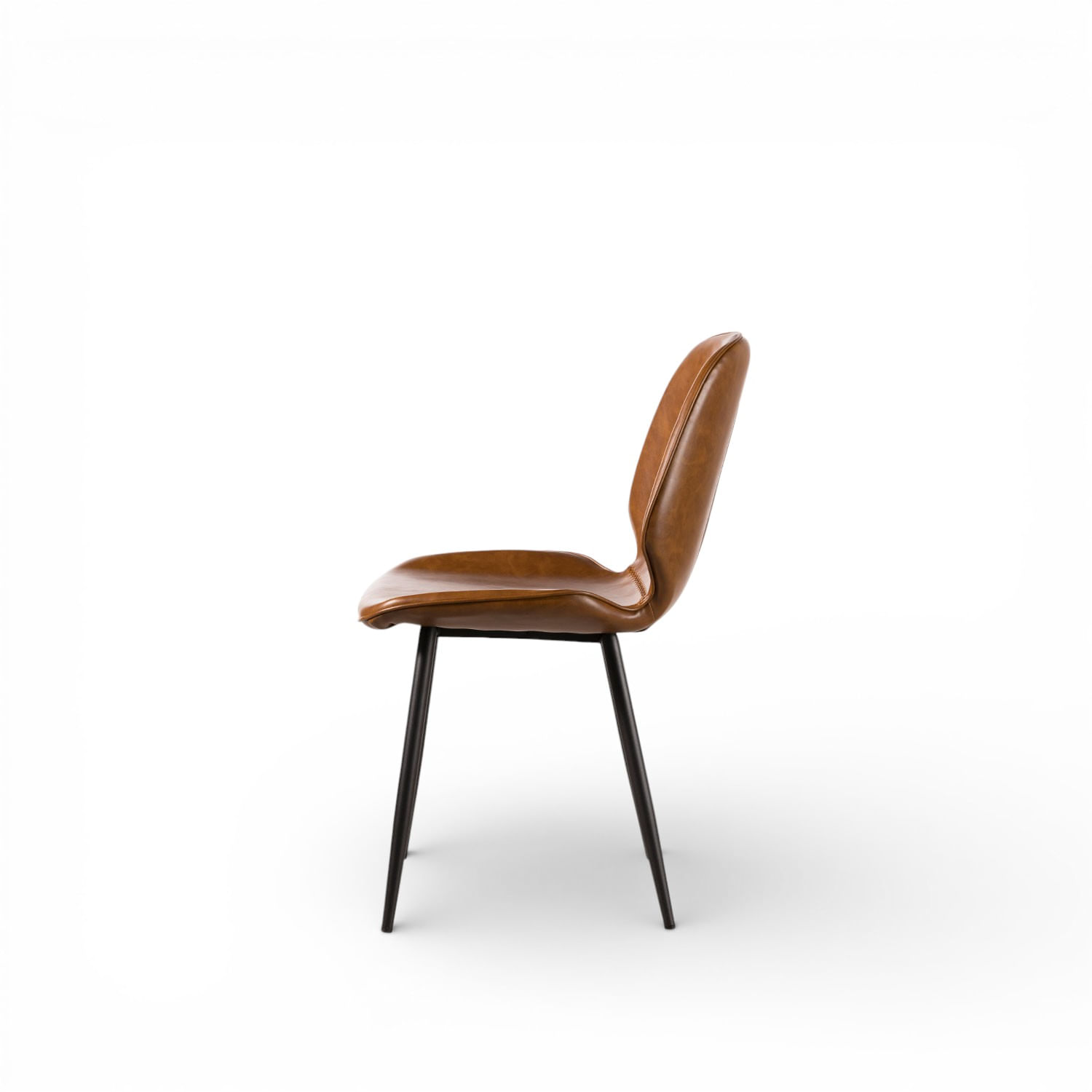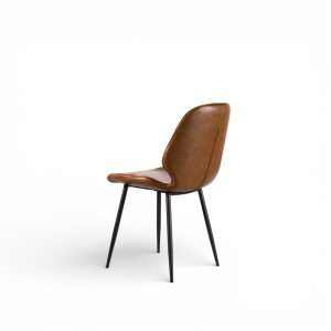 Su diseño curvo, que recuerda a una concha, ofrece una sentada ergonómica y envolvente, ideal para el máximo confort en la mesa. La base metálica de líneas limpias garantiza una estabilidad excepcional, creando un asiento firme y duradero. El tapizado en color camel y el asiento acolchado aportan una modernidad cálida y un toque sofisticado a tu comedor.