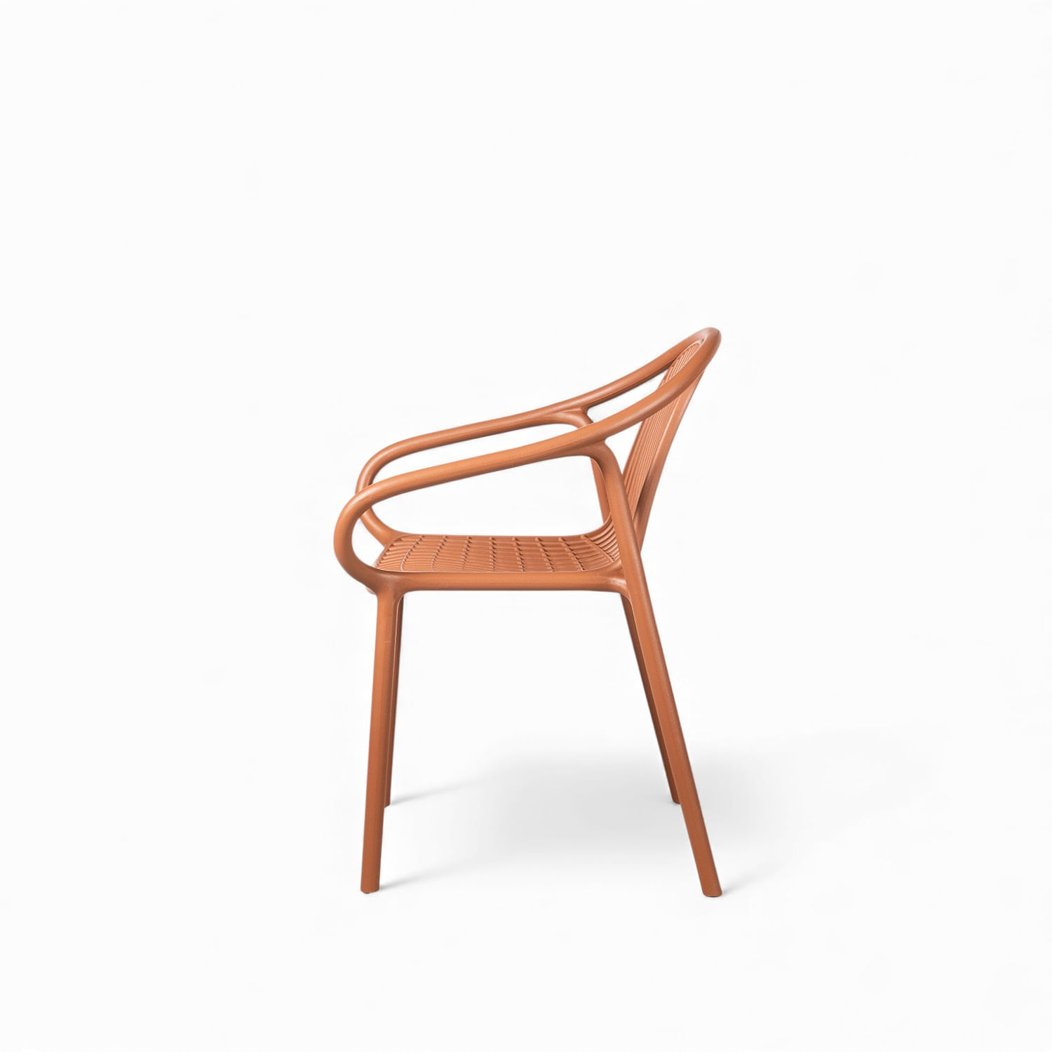 Ideal para cocinas, comedores informales o estudios. La silla Lini es la elección del consumidor práctico que busca máxima funcionalidad, resistencia y una solución de asiento ligera con un diseño atractivo. Se distingue por su silueta curva y ergonómica, inspirada en el diseño escandinavo. Su color terracota proporciona una base neutra y cálida, ideal para crear un ambiente moderno y acogedor en tu mesa.