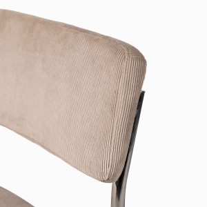 La silla Vali es la elección del anfitrión exigente que busca una pieza que combine máximo confort, durabilidad premium y una estética de alto impacto. Este metal contrasta con el tapizado de tela poliéster en color beige, un tejido conocido por su suavidad, resistencia a la abrasión y fácil mantenimiento.