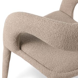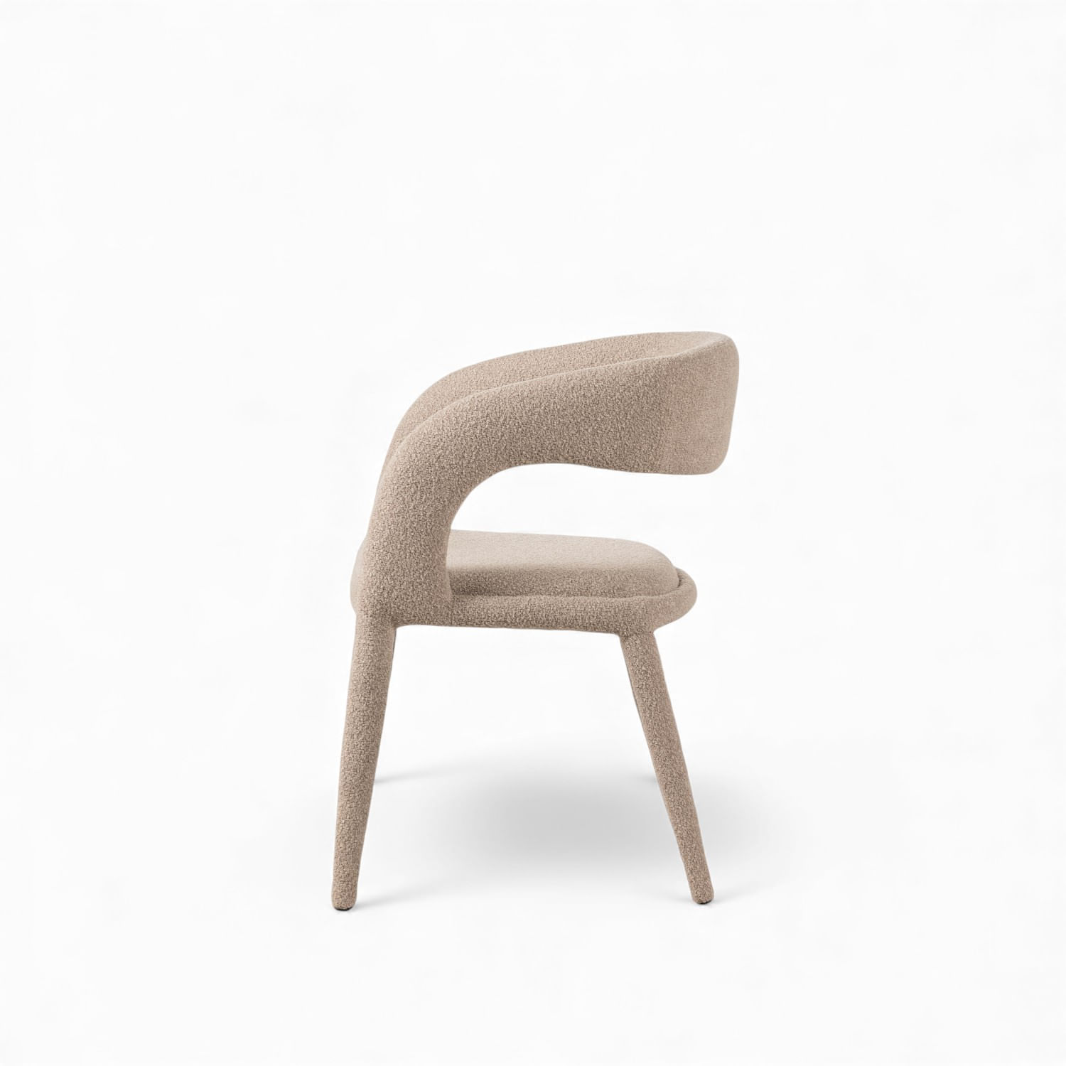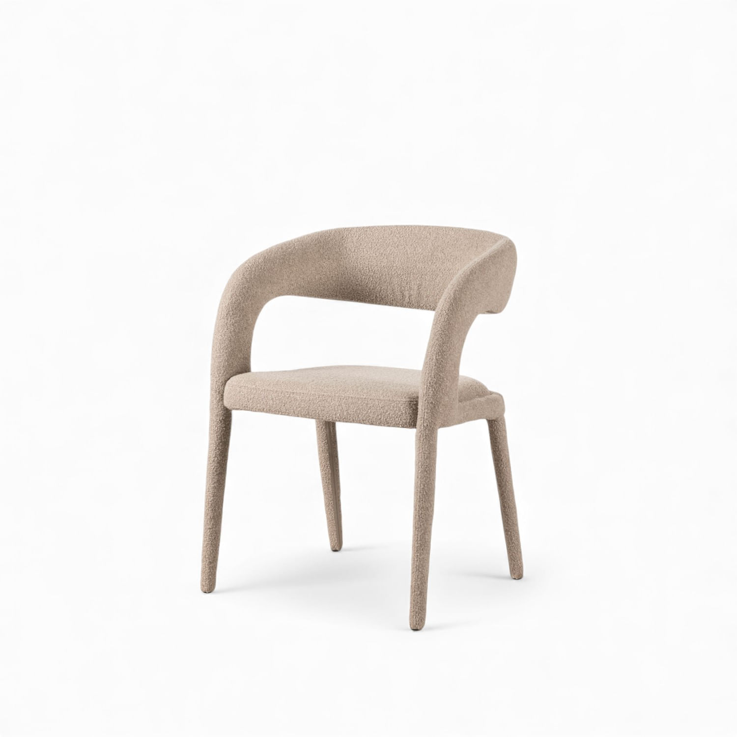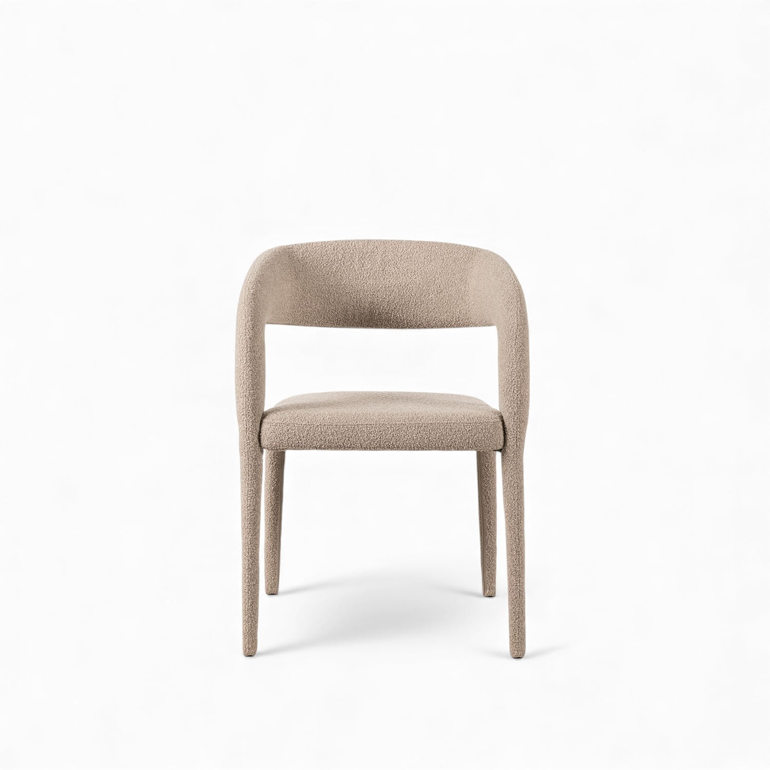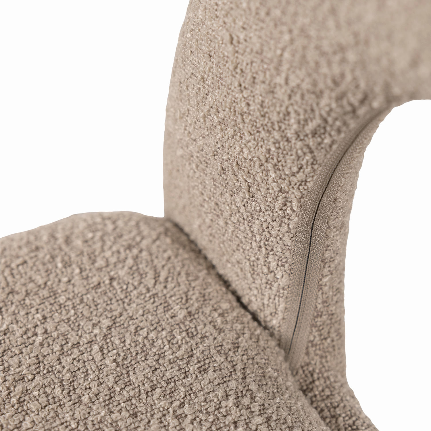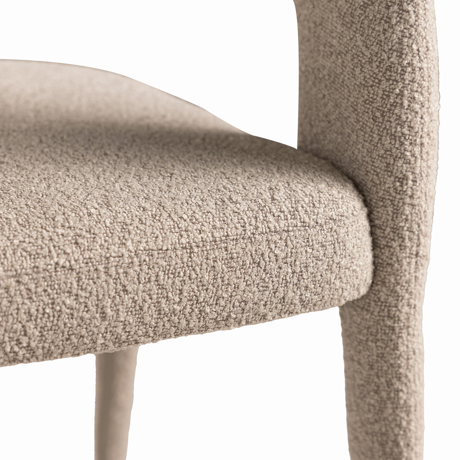 La silla Yumia transforma la experiencia de tu comedor. No solo añade un toque de modernidad a tu mesa, sino que ha sido diseñada para ofrecer una comodidad excepcional, permitiendo que tú y tus invitados disfruten plenamente de cada comida y de las largas sobremesas. Cuenta con un esqueleto metálico robusto, lo que garantiza una estabilidad y resistencia superior. Este armazón metálico está tapizado en tejido de poliéster color taupe.