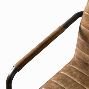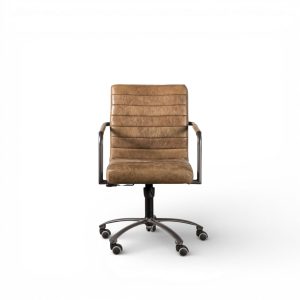 Silla giratoria para escritorio con tapizado en cuero y estructura en hierro, complementa tu oficina o estudio con una pieza moderna y sofisticada con gran trabajo artesanal. 100% cuero importado. Cada pieza es original y única, porque es procesada a mano.