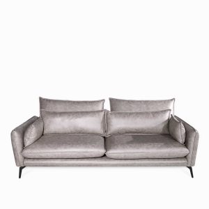 Sofá de tres puestos en poliéster de la colección Alina color champaña, un mueble confortable para la sala de estar. Su estilo clásico permite jugar con diferentes decoraciones.