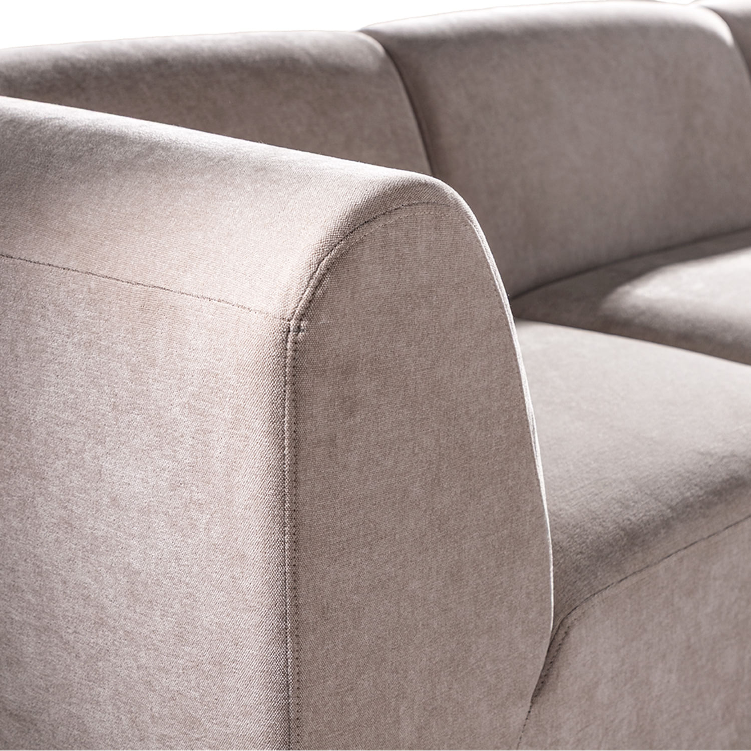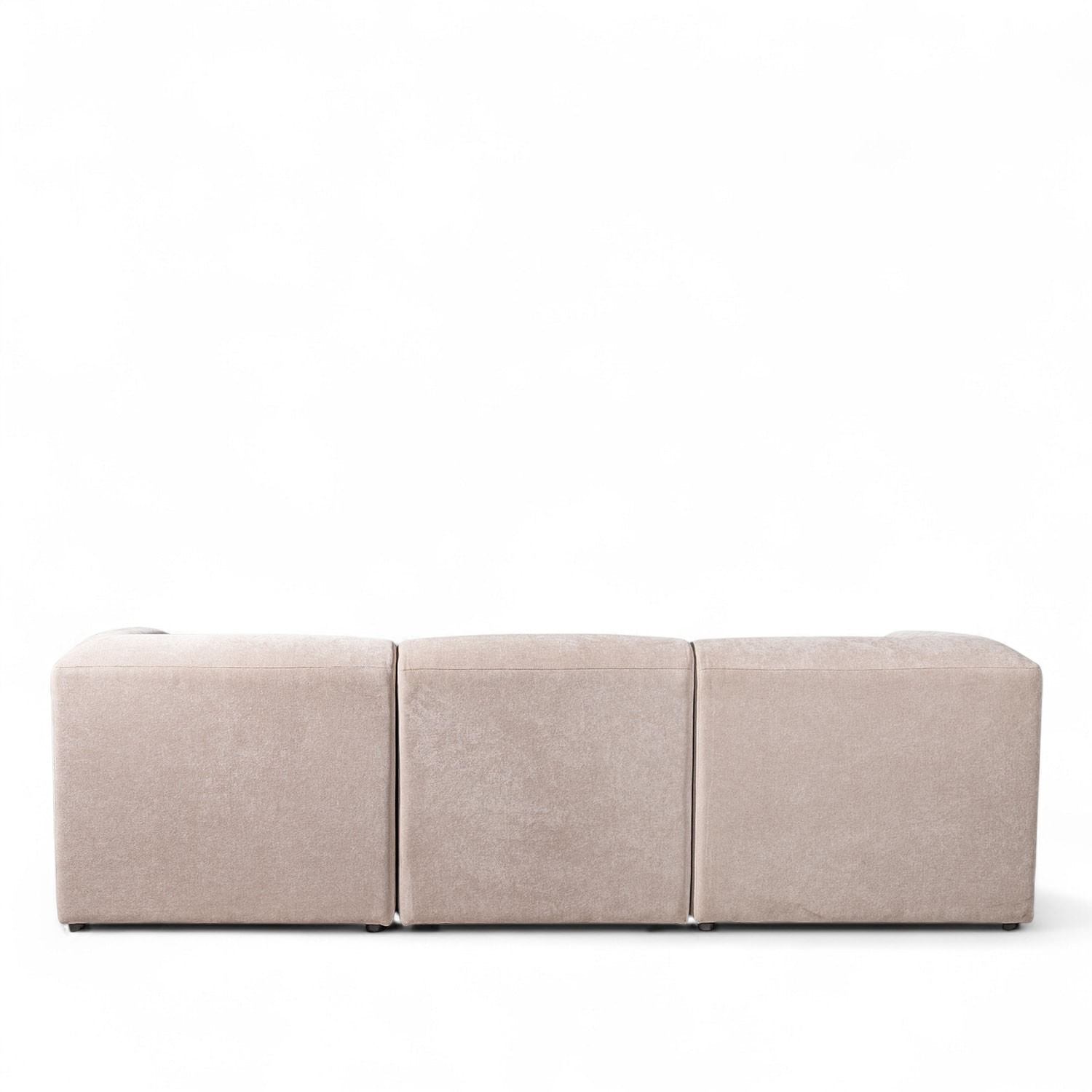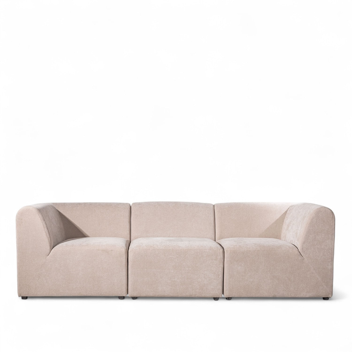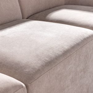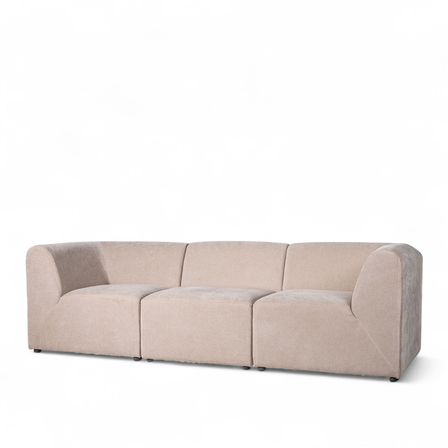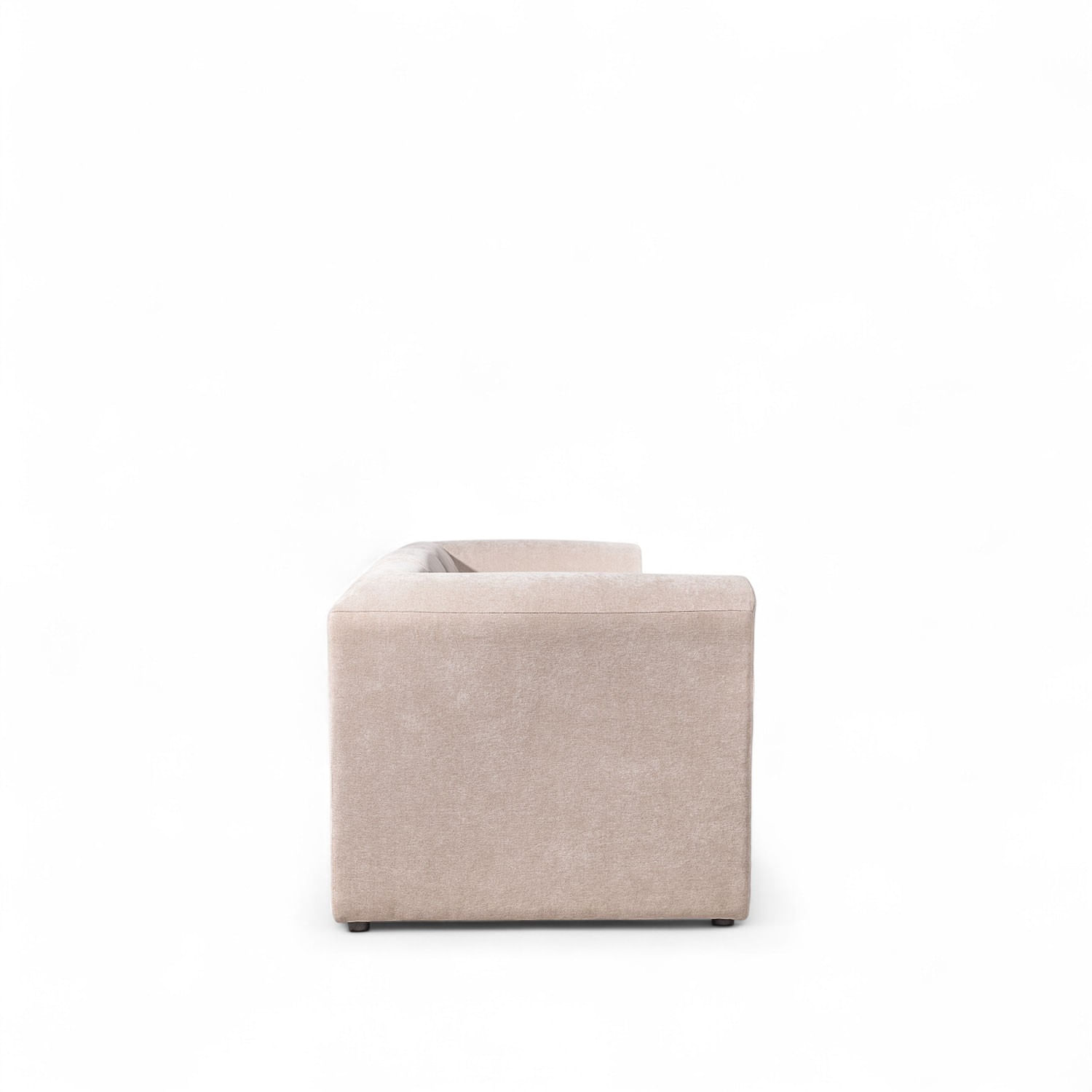 Sofá tres puesto de color arena con relleno de espuma, tapizado en poliéster y respaldo acolchado que garantizan confort y atemporalidad. Aporta carácter y sofisticación a cualquier entorno, adaptándose a los diversos ambientes con su diseño minimalista y diferenciado.