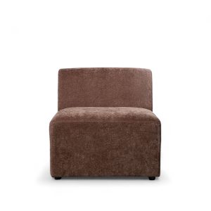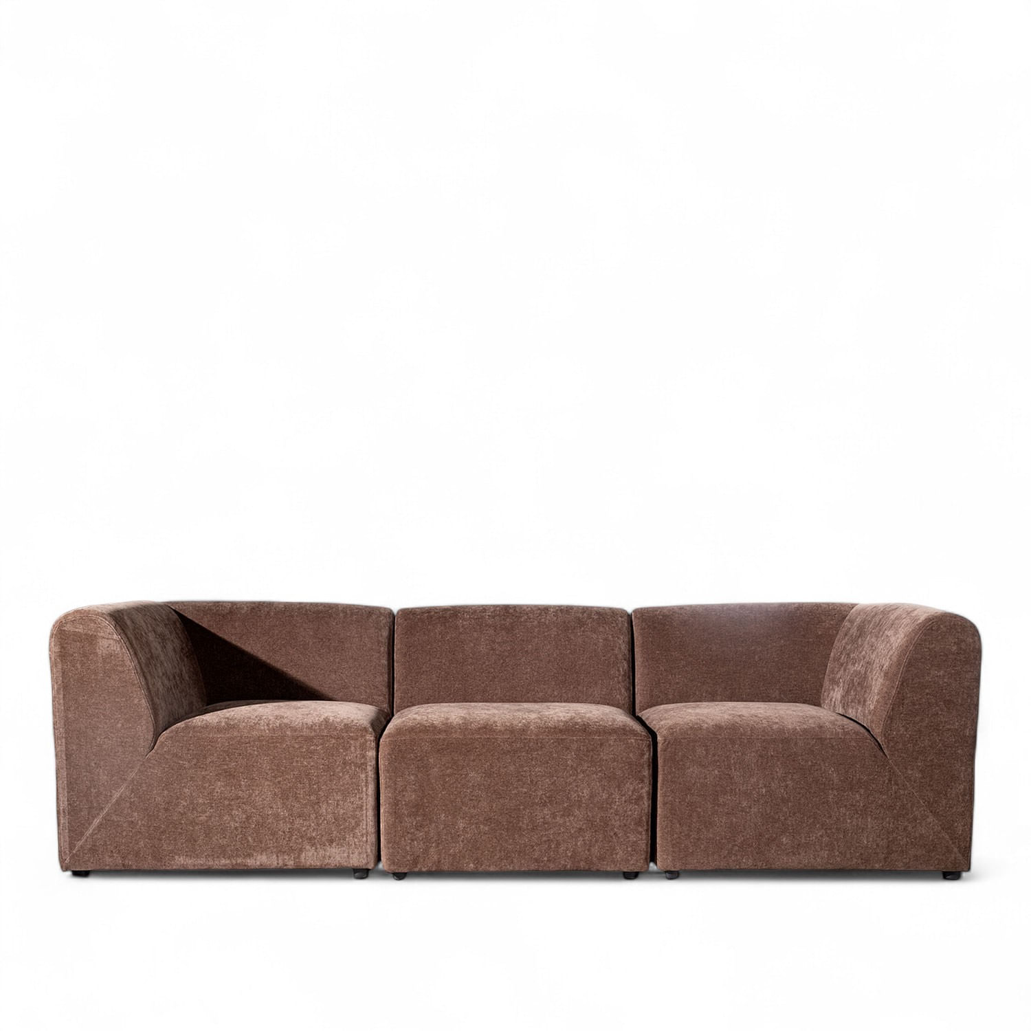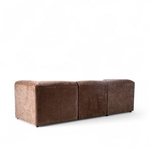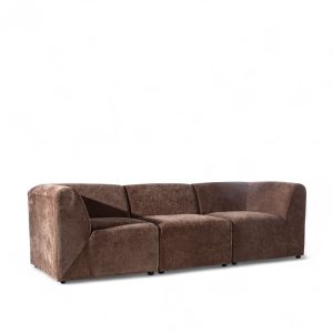 Sofá tres puesto de color chocolate con relleno de espuma, tapizado en poliéster y respaldo acolchado que garantizan confort y atemporalidad. Aporta carácter y sofisticación a cualquier entorno, adaptándose a los diversos ambientes con su diseño minimalista y diferenciado.