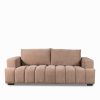 Sofá de 4 puestos en madera y poliéster color gris con patas en metal color dorado de la colección Ansel, su diseño es moderno con acabado tipo velvet y brinda un estilo único.