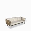 Sofá de dos puestos con marco de aluminio envuelto en un tejido texturizado en ratán, diseñado con elegante estilo, para ser duradero y resistente.