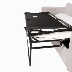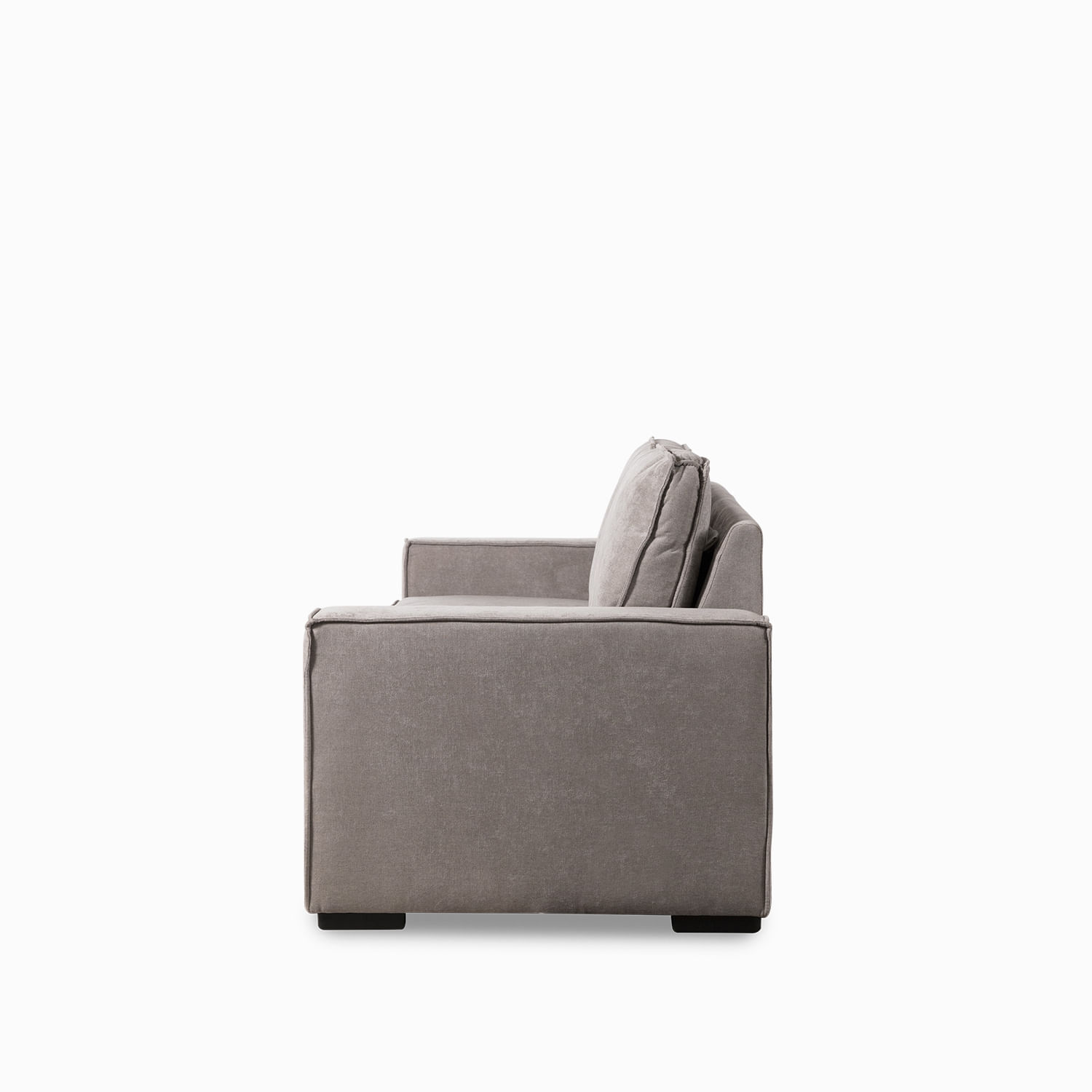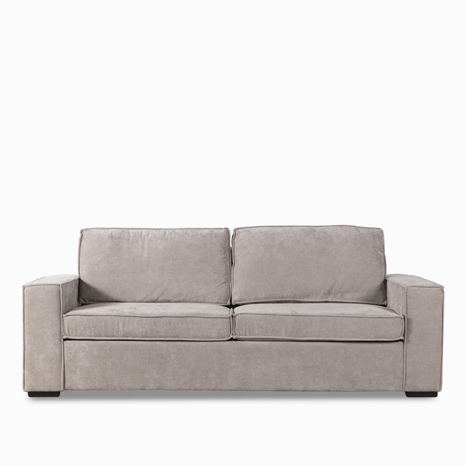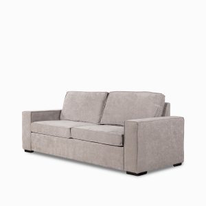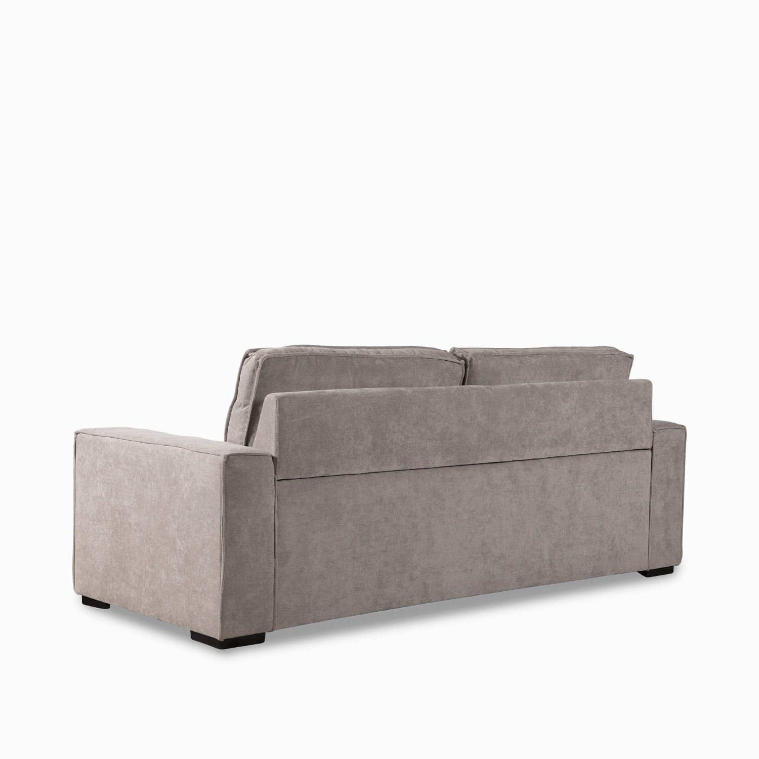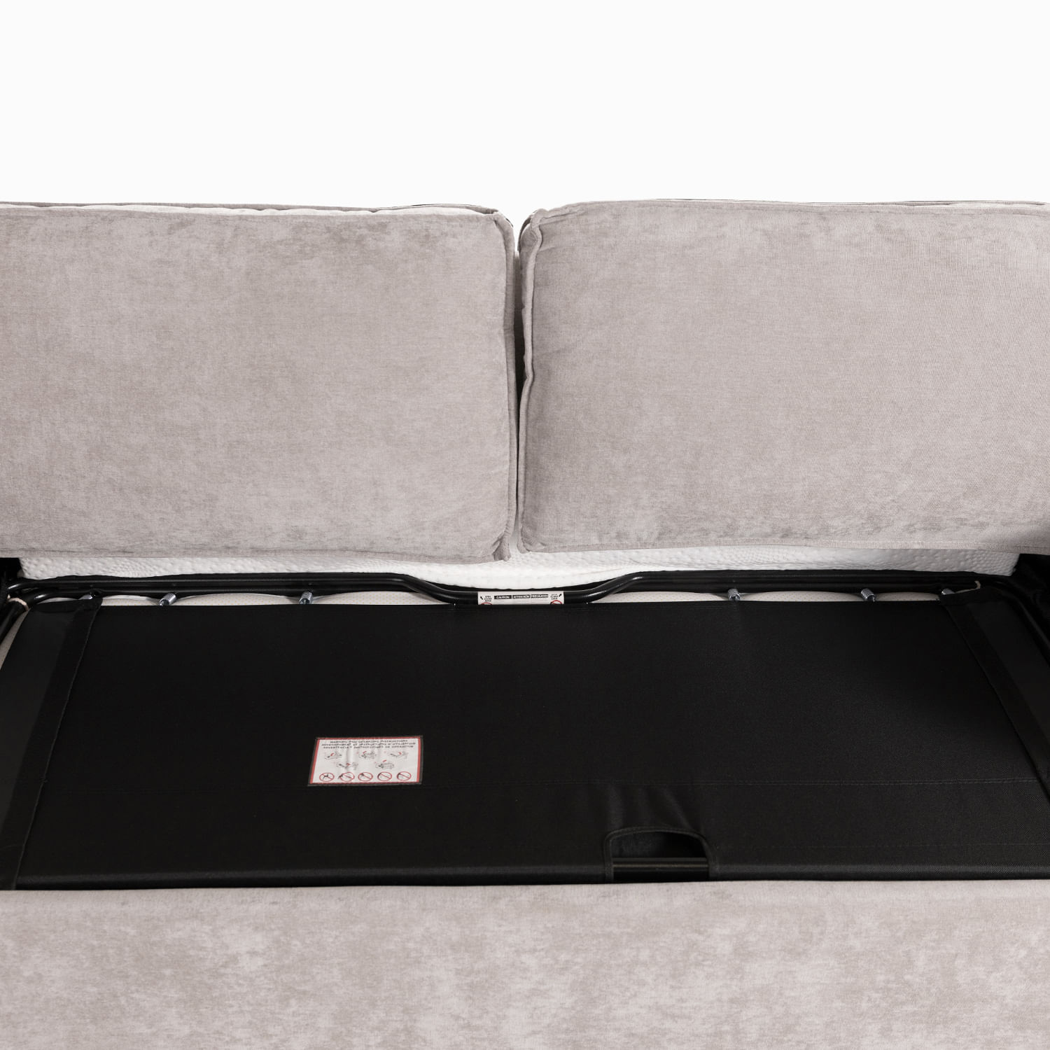 Maximiza tu espacio con una funcionalidad impecable con el sofá cama Agora. Esta pieza de diseño inteligente es un sofá de tres puestos que se transforma sin esfuerzo en una cómoda cama auxiliar. Su estructura de madera maciza contrachapada y su tapizado en Gris Claro ofrecen una solución estable, versátil y luminosa para recibir a tus huéspedes.