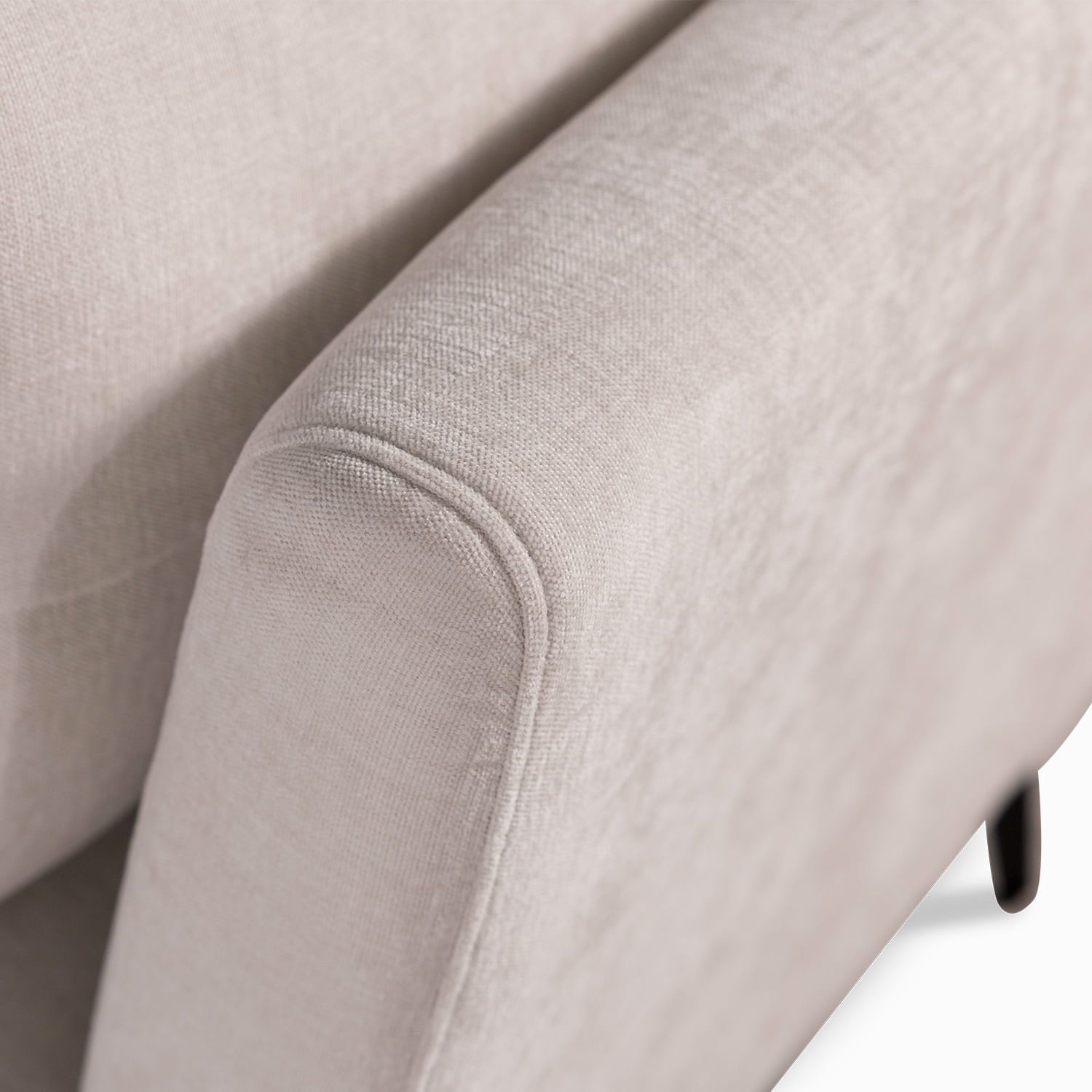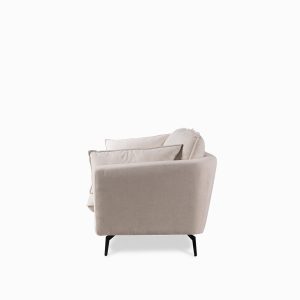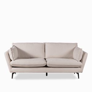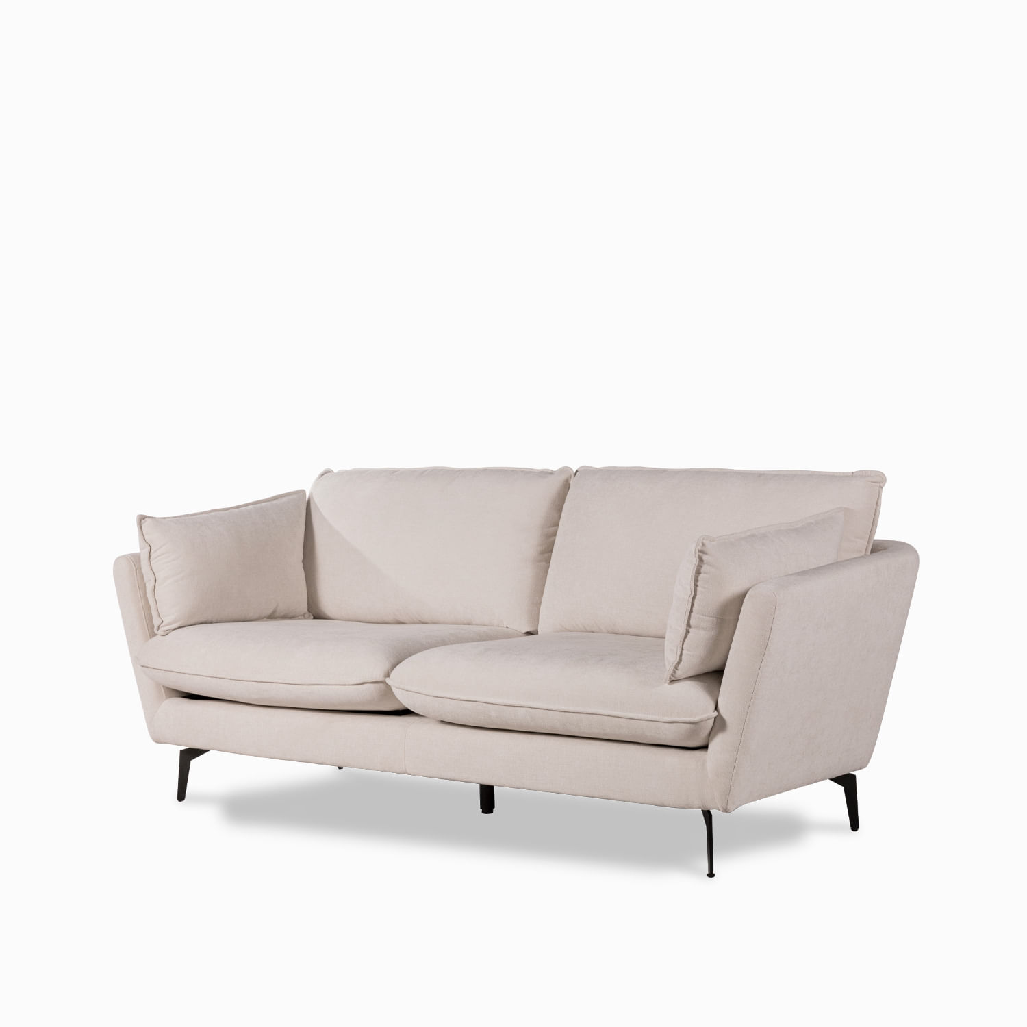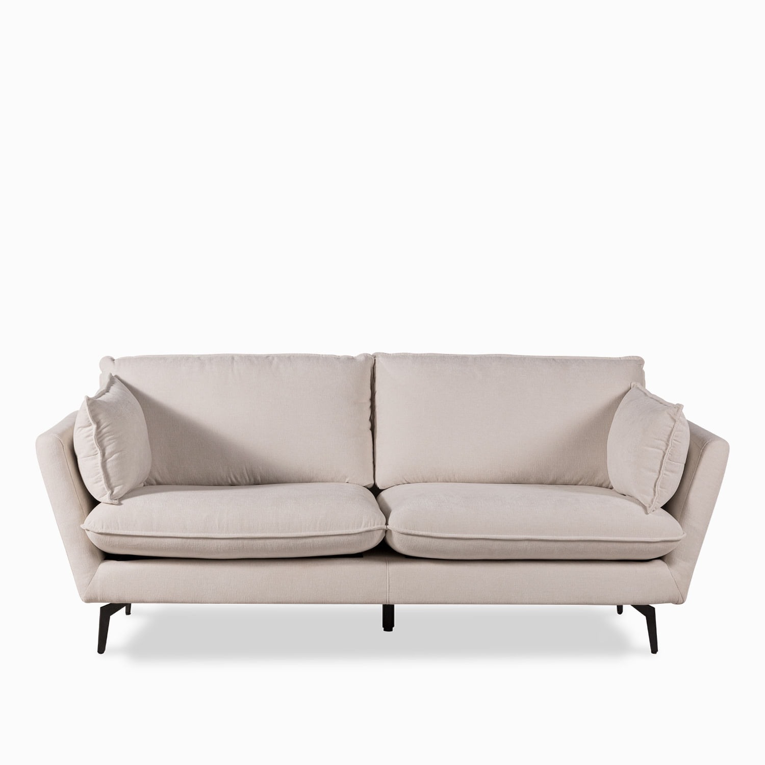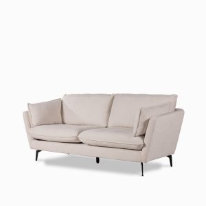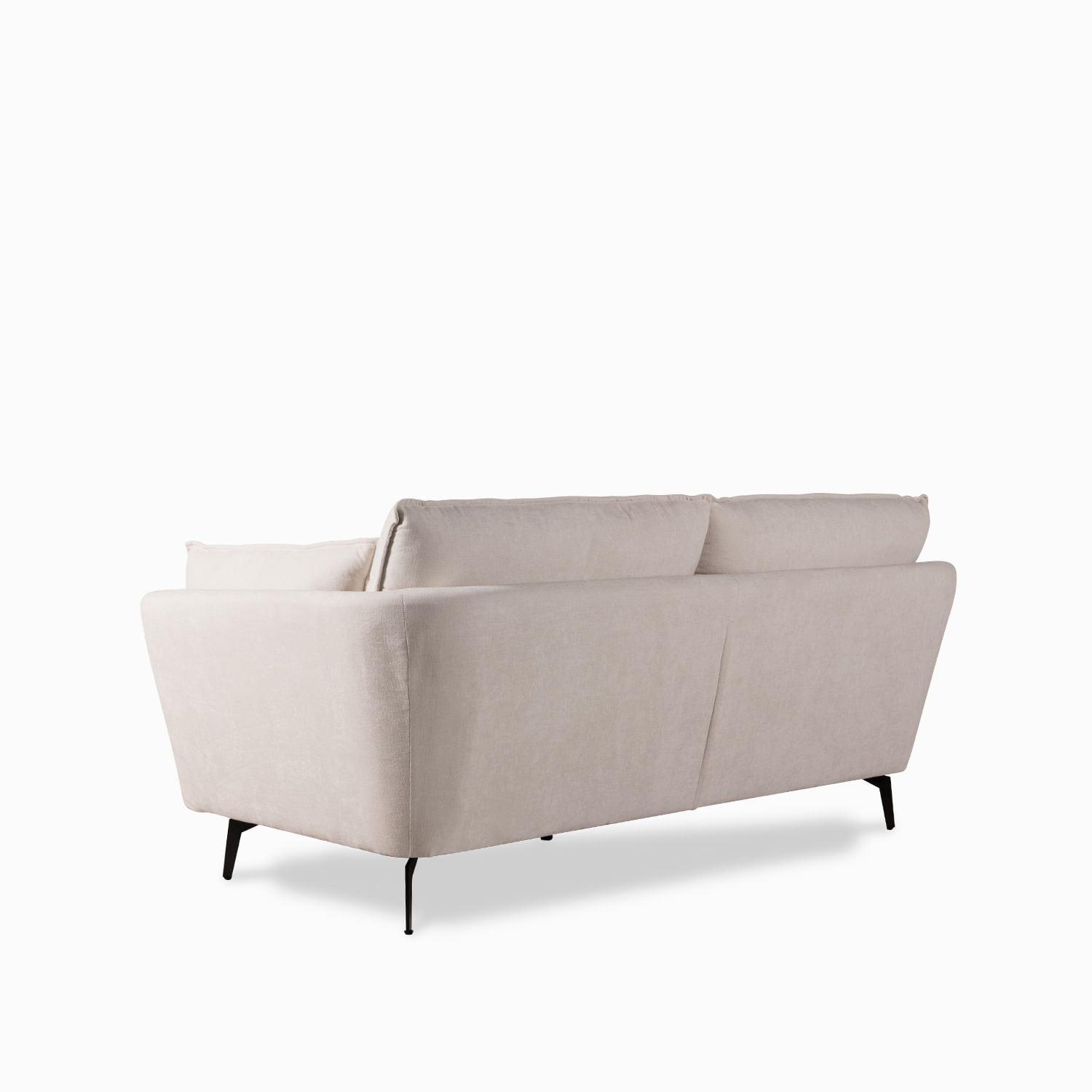Ilumina tu salón con la pureza y el confort del sofá Elia. Esta pieza de tres puestos ofrece un espacio generoso para el descanso y la convivencia. Su sólida estructura de madera maciza dura, un relleno de espuma de alta tecnología y resortes, y un tapizado en tono marfil lo transforman en el centro de tu hogar.