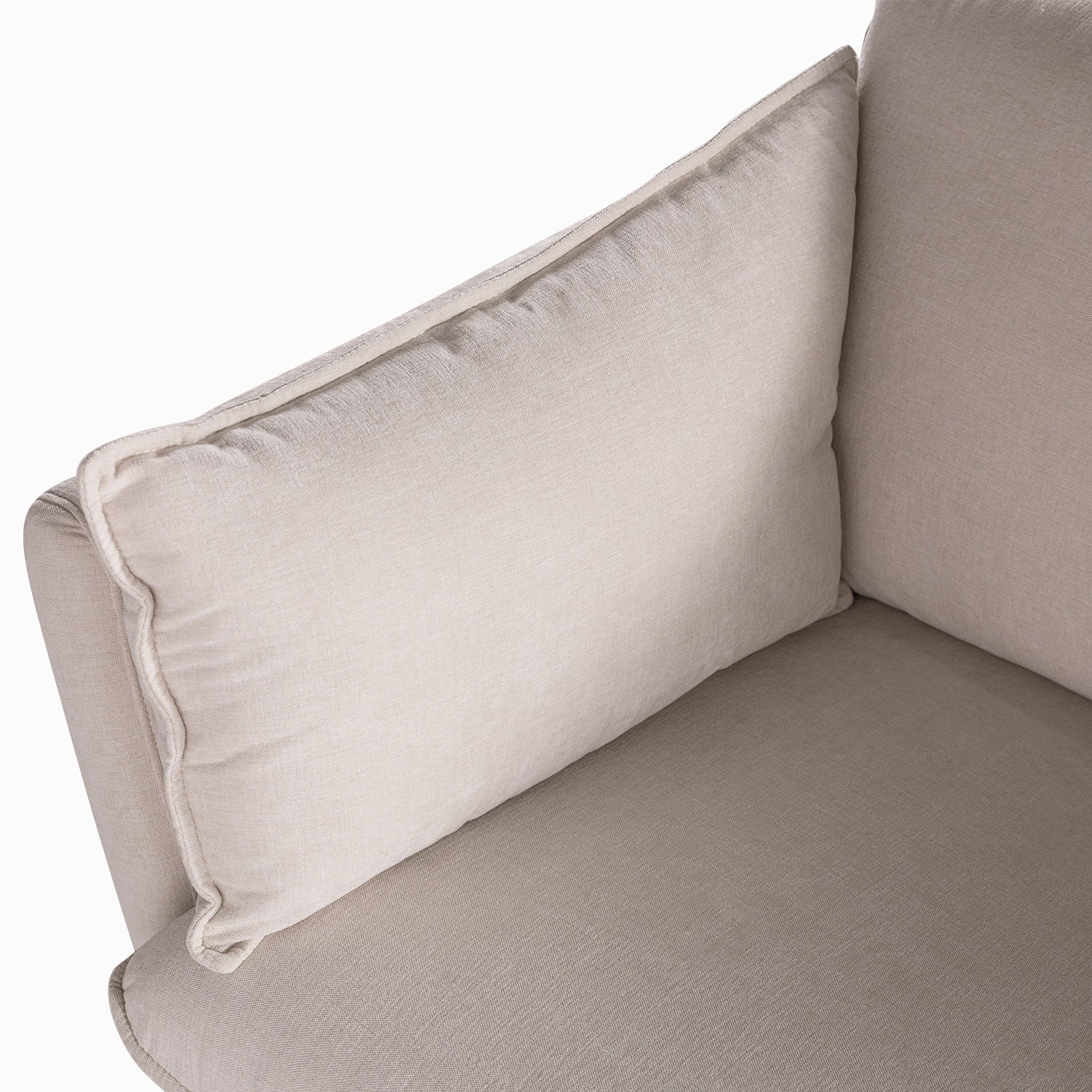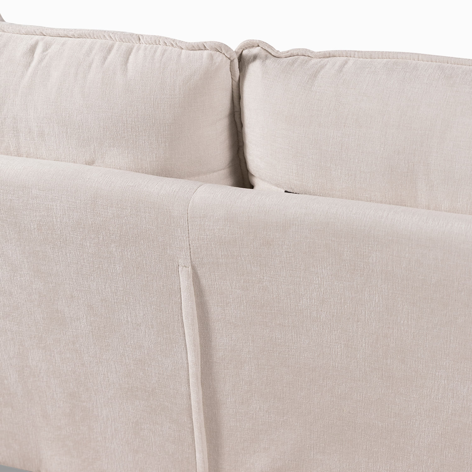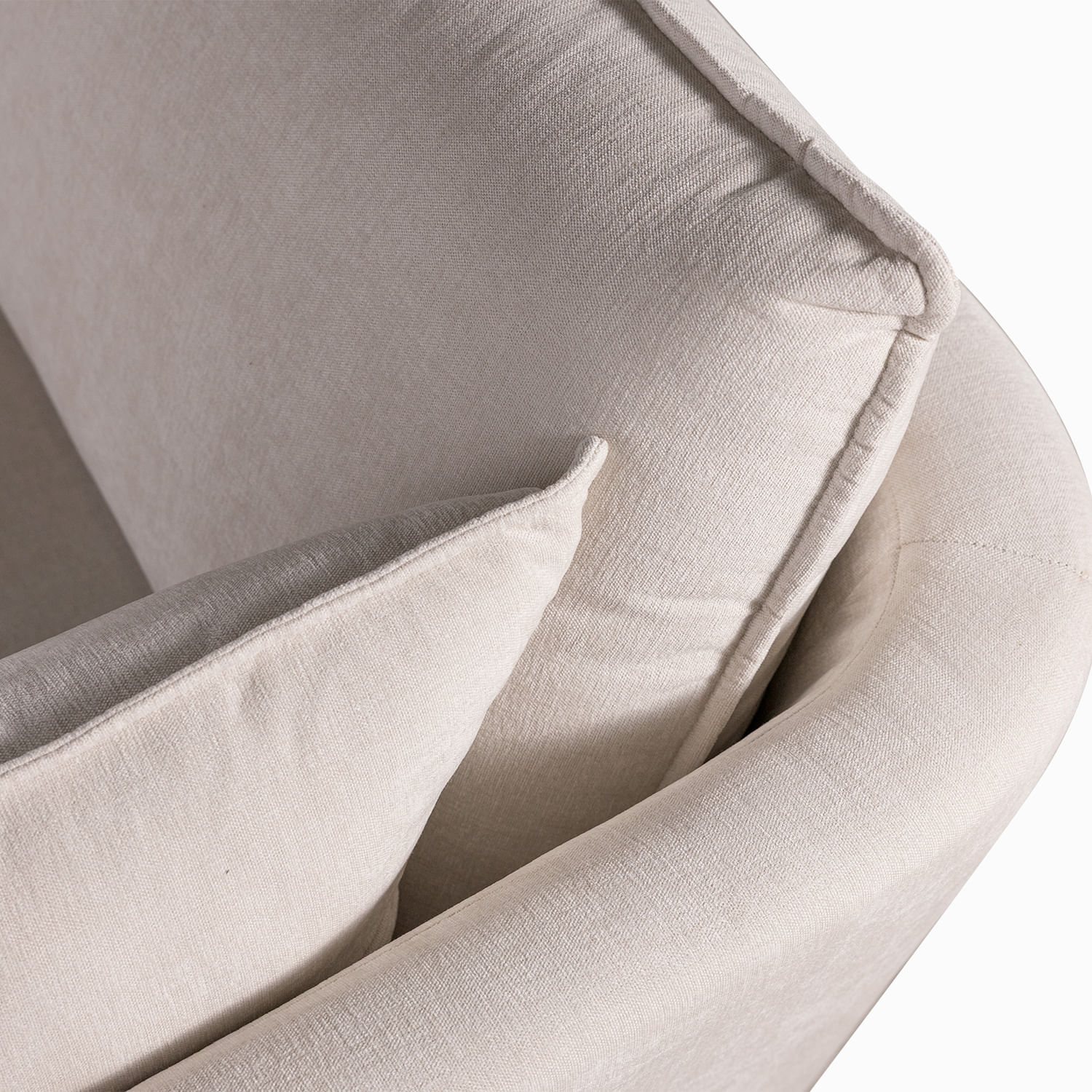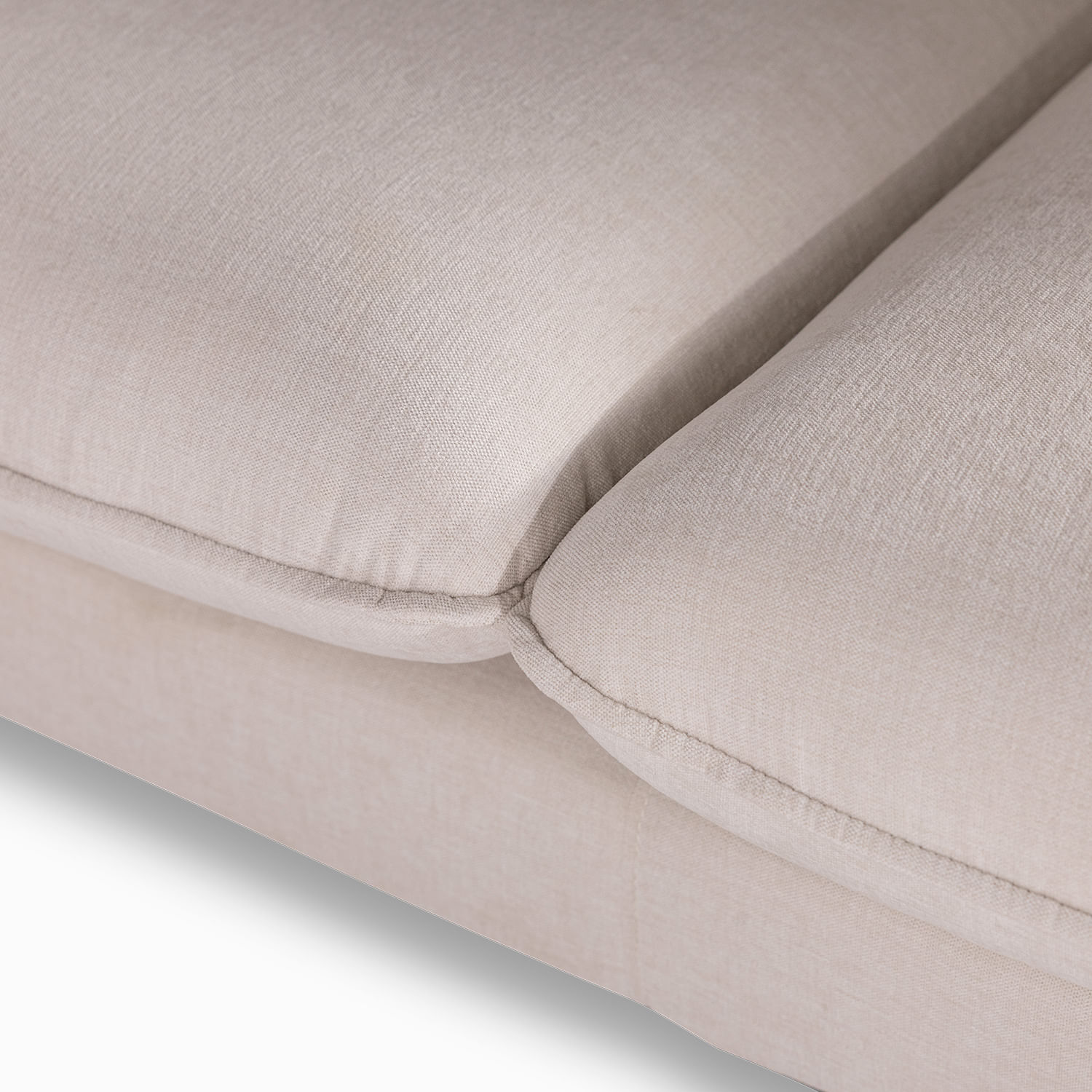Ilumina tu salón con la pureza y el confort del sofá Elia. Esta pieza de tres puestos ofrece un espacio generoso para el descanso y la convivencia. Su sólida estructura de madera maciza dura, un relleno de espuma de alta tecnología y resortes, y un tapizado en tono marfil lo transforman en el centro de tu hogar.