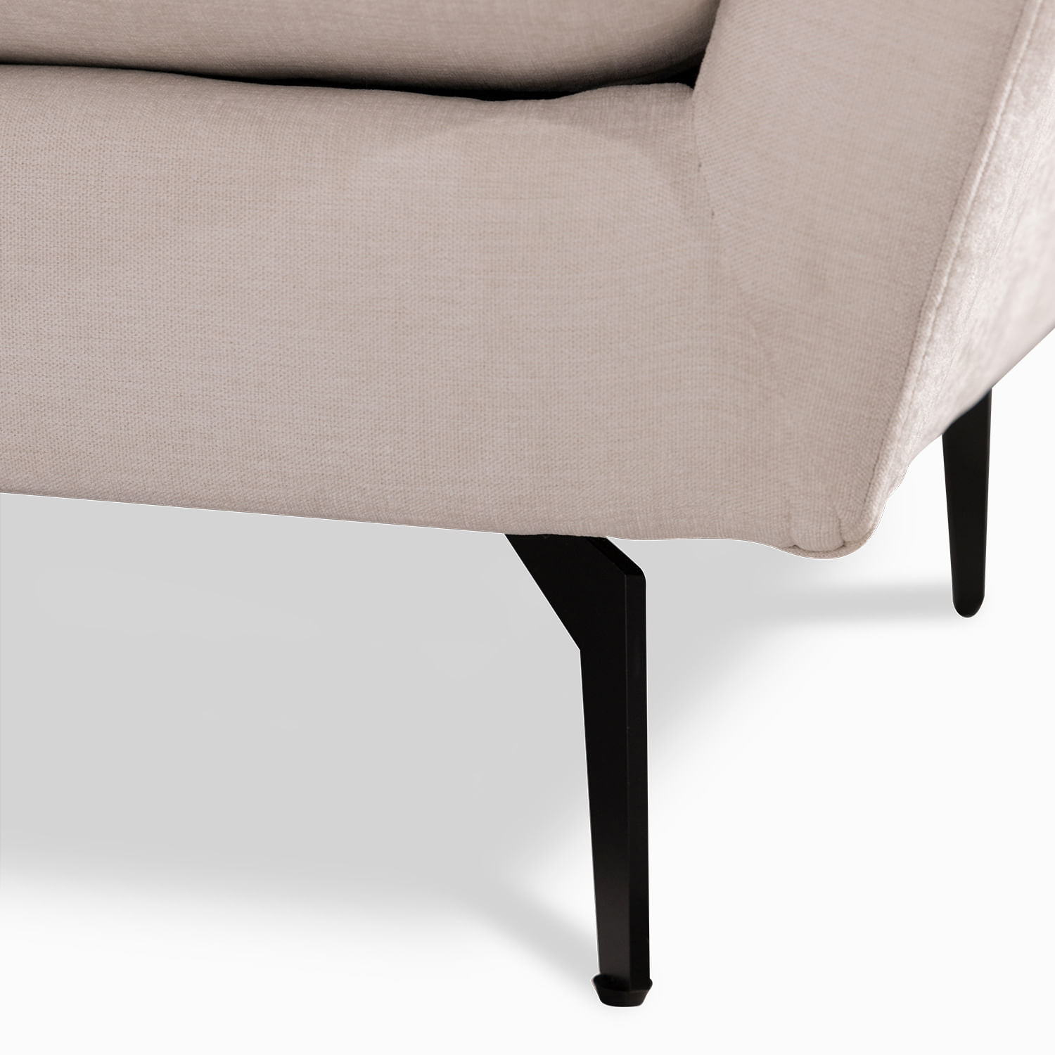 | Material | 70% estructura en madera maciza dura, 10% tapizado en poliéster, 10% relleno en espuma y resortes, 10% patas en metal. |