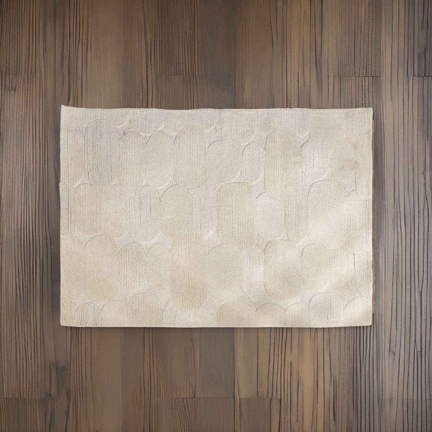 Tapete en lana de estilo contemporáneo. Una pieza decorativa ideal para aportar personalidad y complementar espacios con encanto en color crema. Con diseños abstractos y ovalados, aporta calidez y luminosidad a cualquier espacio, delimitando los entornos según la disposición en que se utilice.