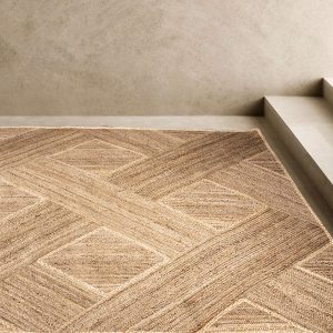 Tapete decorativo tejido 100% en yute. Una pieza ideal para aportar personalidad y complementar espacios con encanto en color natural. Con figuras geométricas triangulares y tejidos en tonalidades tierra que aportan calidez, modernismo y encanto artesanal a cualquier espacio, delimitando los entornos según la disposición en que se utilice. Ideal para salas de estar, alcobas y bibliotecas.