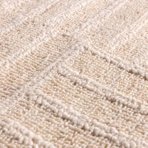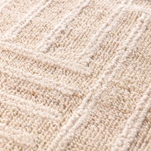 Tapete en yute y lana de diseño artesanal, de la colección Kubusi (200 cm x 300 cm). Una pieza decorativa ideal para aportar personalidad y complementar espacios, aporta calidez y elegancia a cualquier espacio, delimitando los entornos según la disposición en que se utilice.