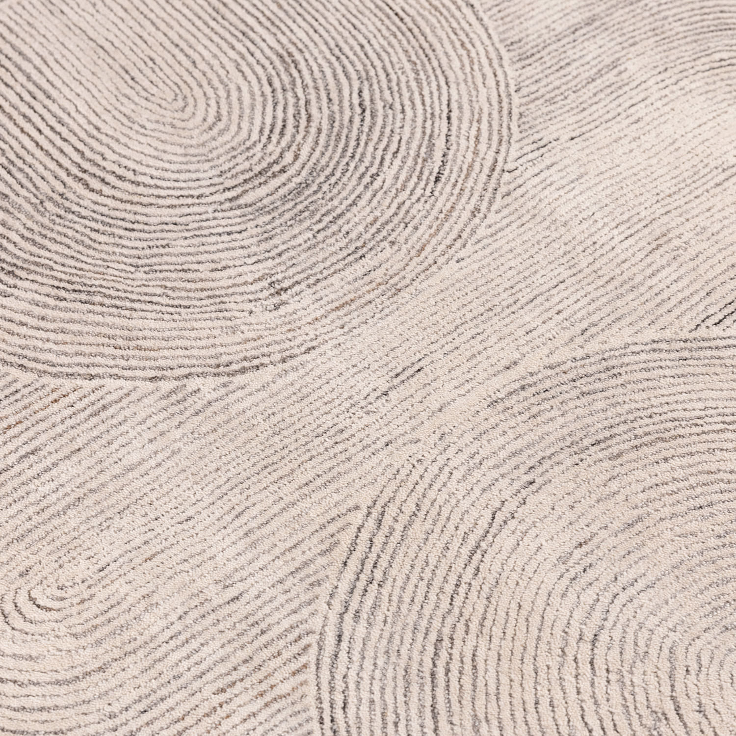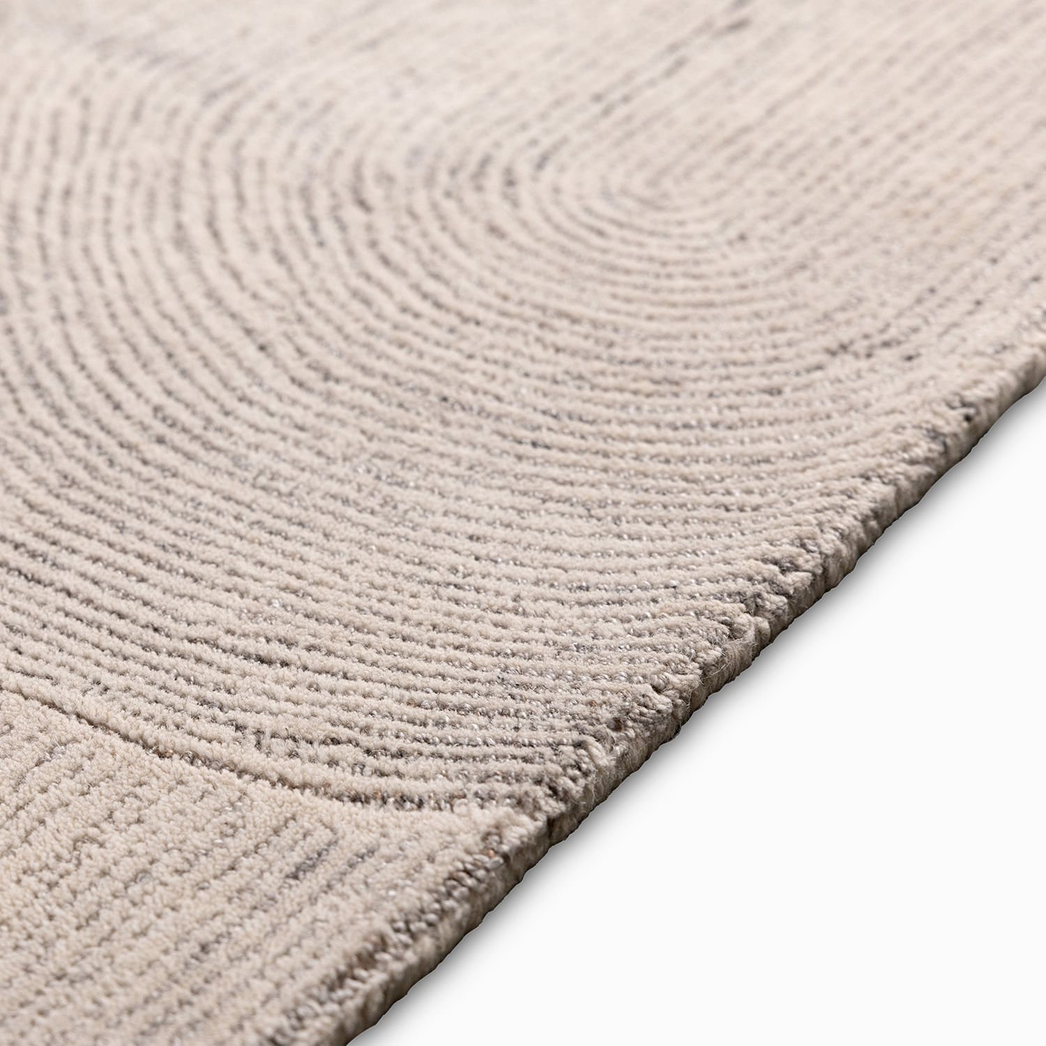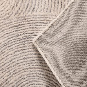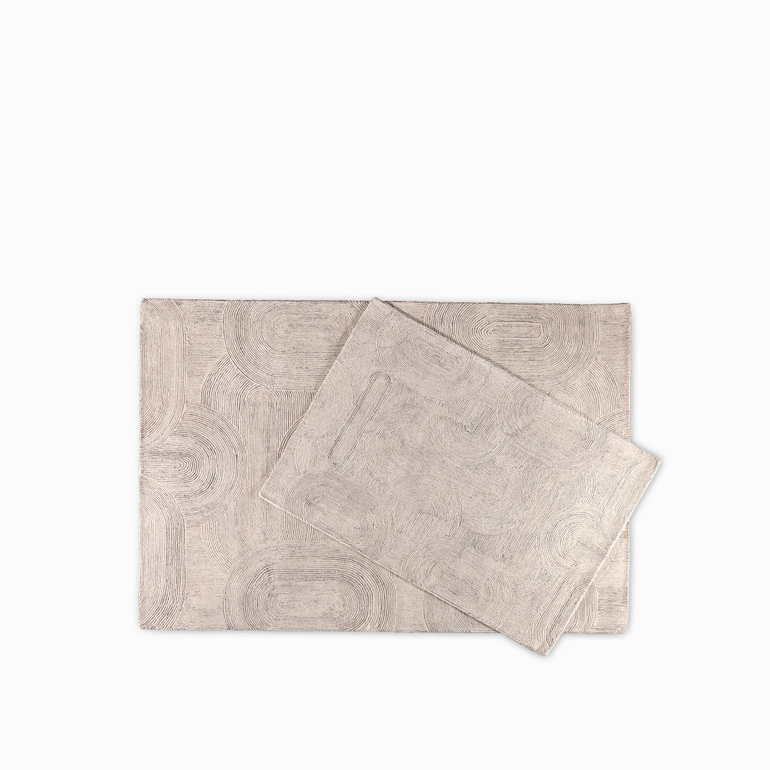 El tapete Ritmo utiliza la mezcla de tonos natural y café para crear un patrón visualmente relajante pero con carácter. Es la base perfecta para salas de estar o dormitorios que buscan una estética rústica-moderna o de lujo orgánico.