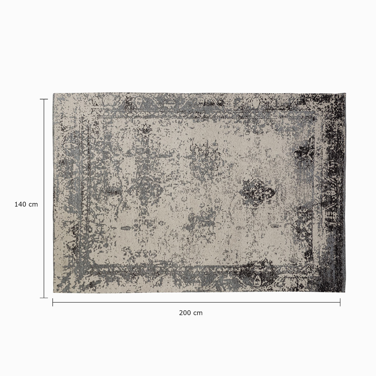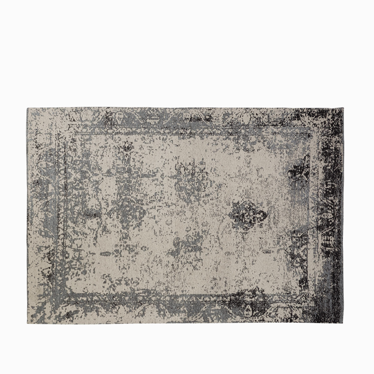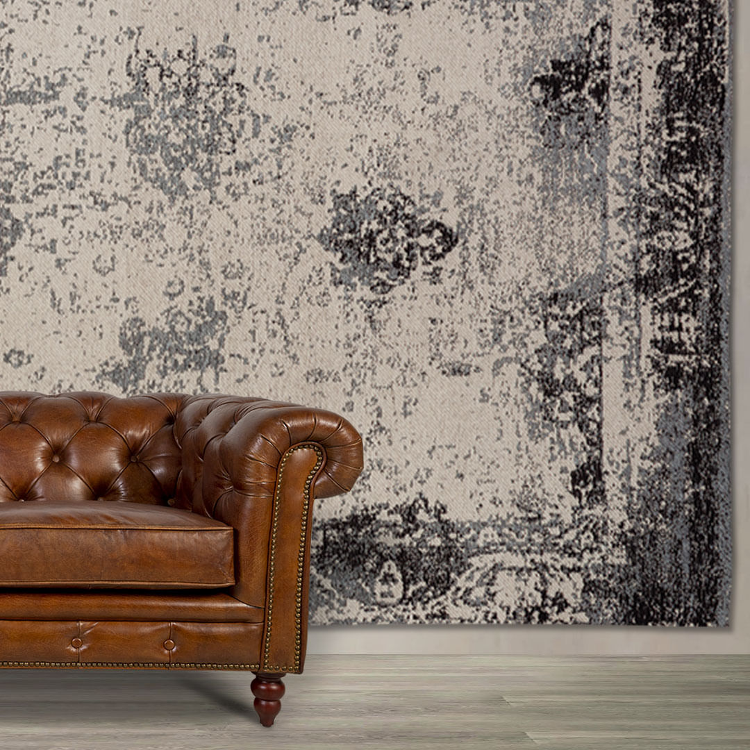 Tapete en algodón de 140 x 200cm de la colección Vintage con tonos color gris oscuro, pieza funcional y decorativa para sala u oficina con diseño clásico que nunca pasa de moda.