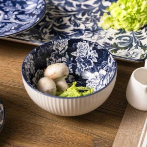 Con un estampado floral con tonos azules, estos tazones evocan la belleza de la cerámica tradicional, aportando un aire de distinción a cualquier servicio. Cada unidad cuenta con un volumen de 770 ml, siendo el tamaño ideal para servir porciones abundantes de sopas, cremas, pastas o ensaladas individuales. Fabricados en cerámica, ofrecen una superficie resistente, higiénica y de fácil limpieza para el uso diario. La presentación en Set x4 permite uniformidad en tu vajilla, garantizando una mesa coordinada para tus comensales.