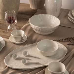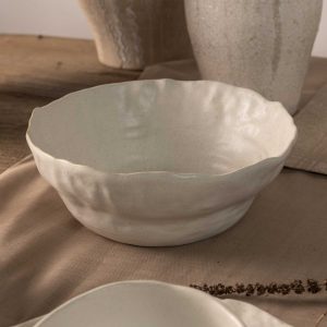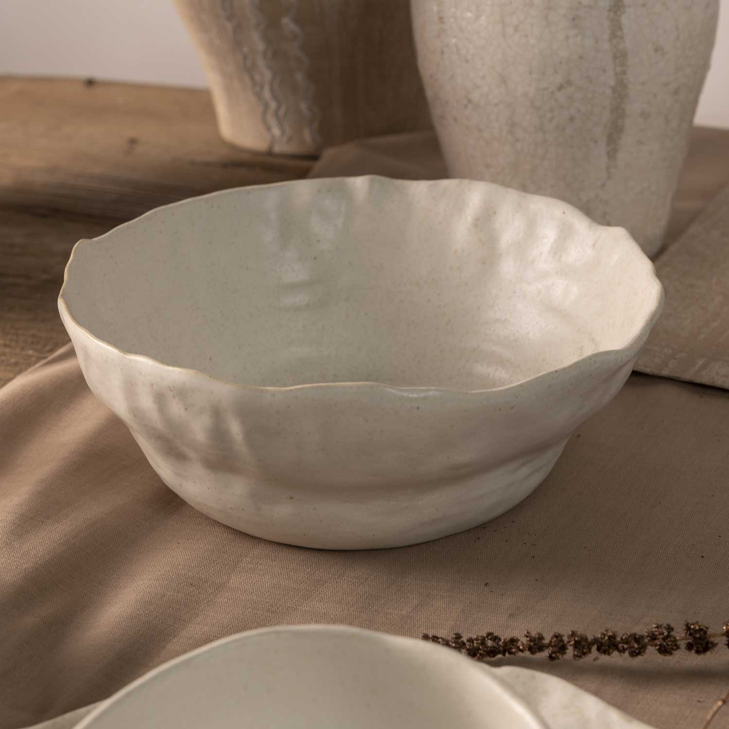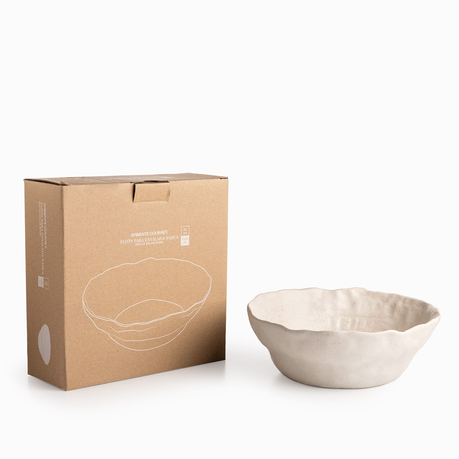 Presenta un acabado con texturas y bordes irregulares que evocan la belleza de la cerámica hecha a mano, convirtiéndose en el centro de atención de cualquier mesa. Con un volumen de 1500 ml, es la pieza ideal para servir ensaladas abundantes, pastas familiares o frutas de temporada en grandes reuniones. Su diseño orgánico combina tonos crema con sutiles detalles de color, adaptándose tanto a ambientes rústicos como a decoraciones modernas que buscan un toque cálido.