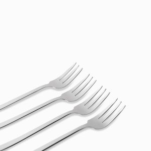 Los tenedores Avesa han sido diseñados para quienes valoran la presentación hasta en el más mínimo detalle. Su estructura equilibrada y puntas refinadas permiten un corte suave de texturas esponjosas o cremosas, elevando la experiencia de degustar un postre en casa al nivel de una pastelería gourmet. El acero 18/0ss asegura que los tenedores mantengan su forma y no se doblen, siendo lo suficientemente robustos para el uso cotidiano. Son fáciles de lavar y conservan su acabado plateado sin necesidad de pulidos constantes.