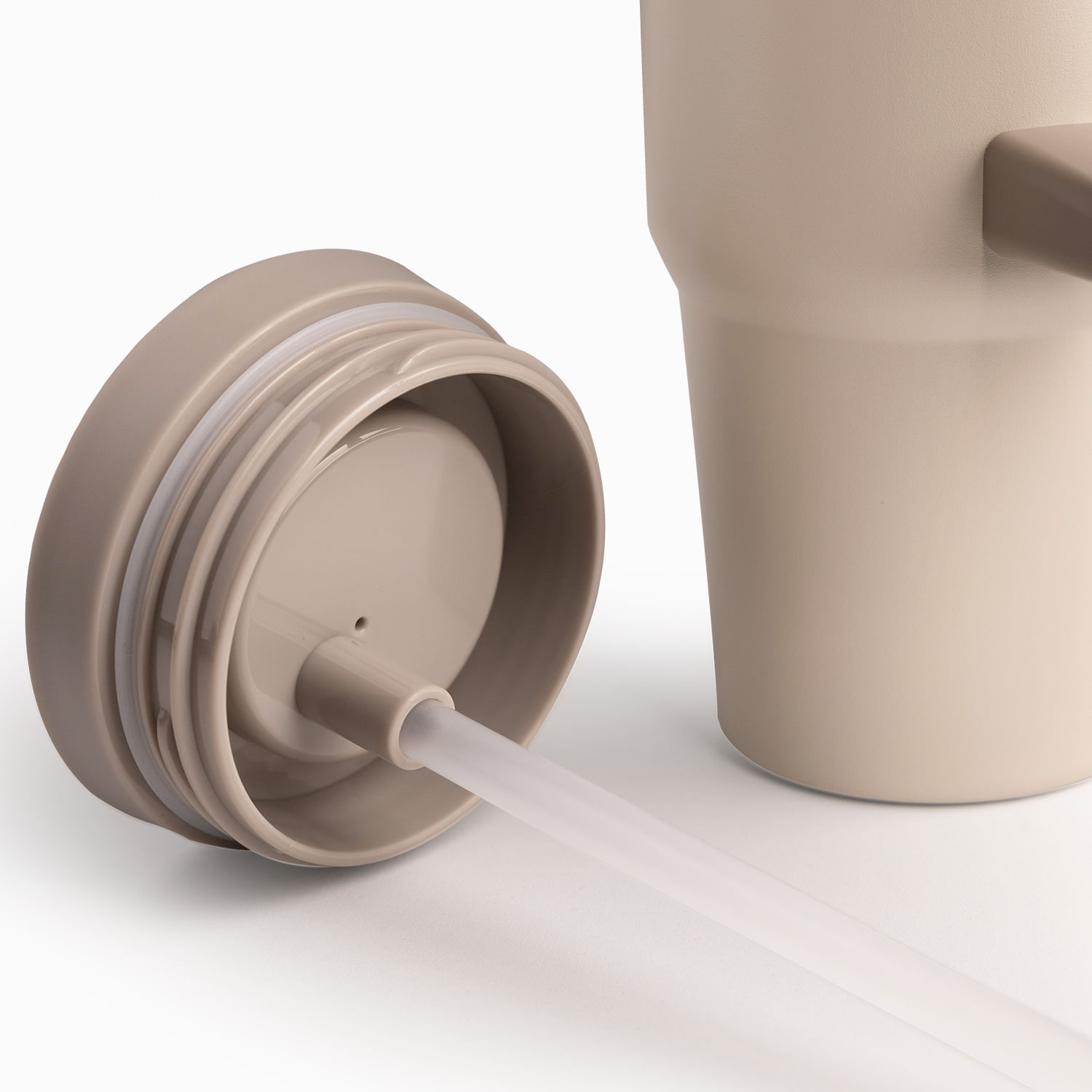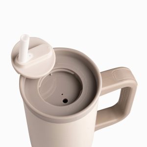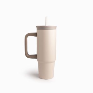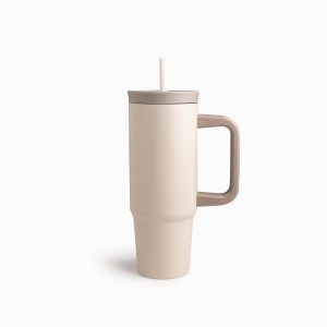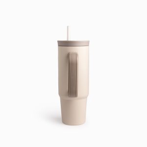 Termo doble pared beige con pitillo y manija 900ml