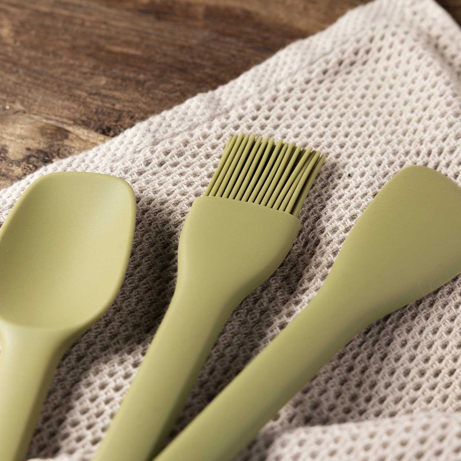 La solución completa para tus recetas de repostería. Este juego de espátula, brocha y cuchara de silicona es ideal para batir, servir y mezclar tus preparaciones. Su color verde de temporada es un toque de estilo, y su resistencia a temperaturas entre -15°C y 150°C garantiza su durabilidad y versatilidad.