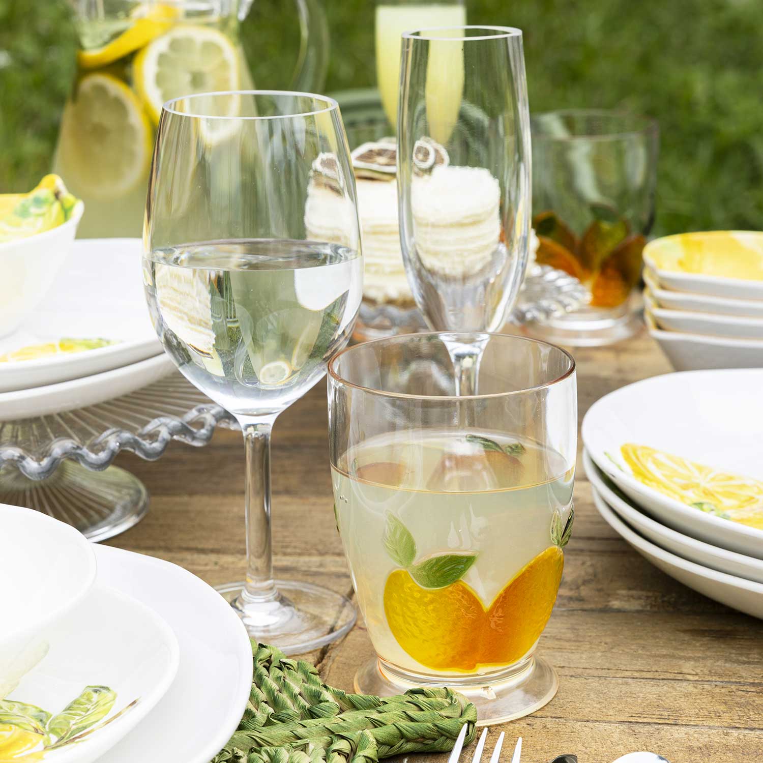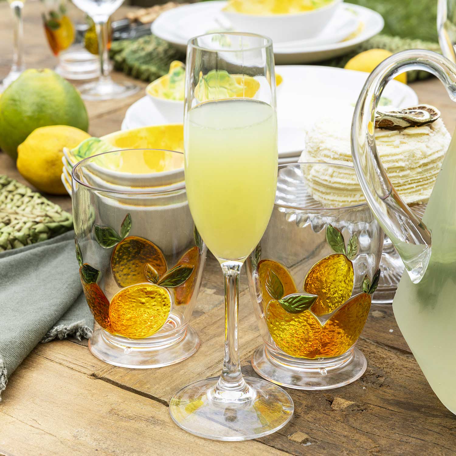 Este vaso presenta un alegre motivo de limones, aportando un toque de color y frescura natural a tus comidas de verano o reuniones al aire libre. es una pieza altamente resistente a impactos y caídas, por su fabricación en acrílico. Con un volumen de 490 ml, es perfecto para servir limonadas, tés helados, refrescos o agua con hielo con total comodidad.