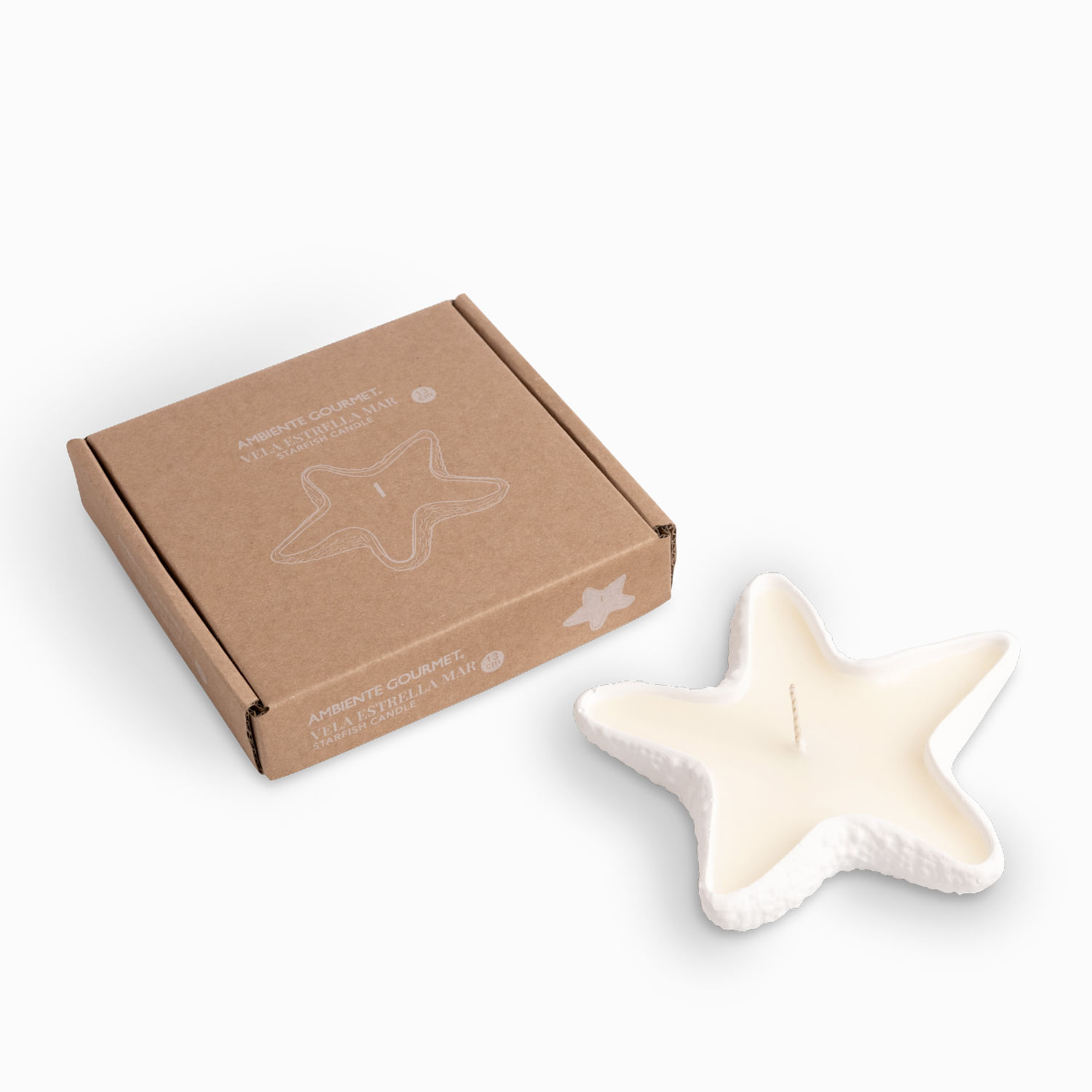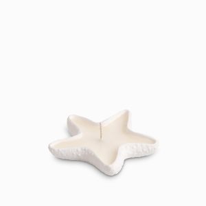 Captura la belleza geométrica del océano con la vela estrella mar, una pieza decorativa que aporta serenidad y sofisticación a tus espacios. Su diseño plano y simétrico en forma de estrella de mar se convierte en una sutil escultura sobre cualquier superficie. Elaborada con parafina y cera de soja, asegura una luz limpia y duradera en un elegante tono beige.