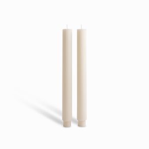 Añade altura, elegancia y luz cálida a tu mesa con el set de 2 velas largas rayas ivory. Estas piezas esculturales de 27 cm no son solo iluminación, sino una declaración de estilo con un patrón de rayas sutil y moderno. Su mezcla de parafina y cera de soja garantiza una experiencia de quema superior, limpia y sin goteo excesivo.